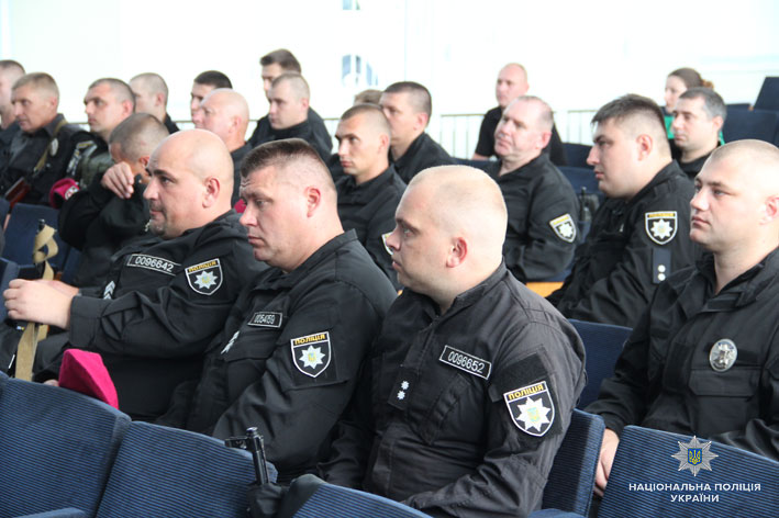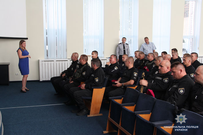 Після стройового огляду у дворі Головного управління Нацполіції, на якому відділ професійної підготовки управління кадрового забезпечення проінспектував зовнішній вигляд, однострої та документи бійців, з правоохоронцями спілкувалася психолог.