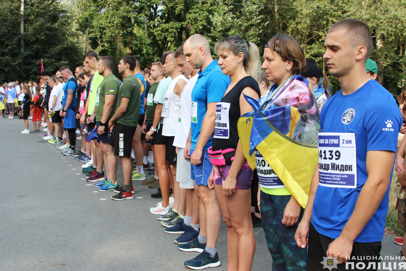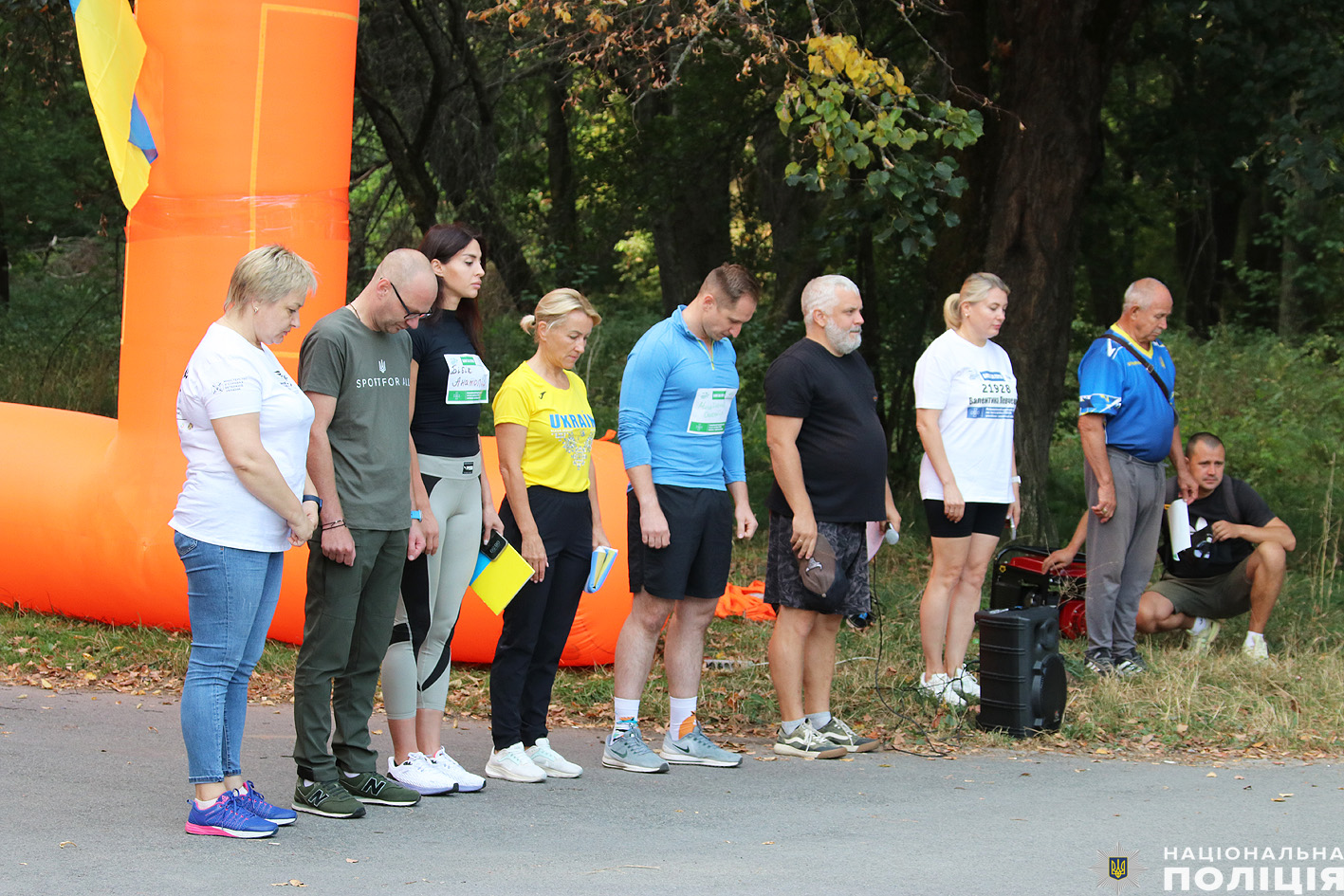 Перед початком забігу всі присутні вшанували світлу пам'ять полеглих захисників хвилиною мовчання та хором заспівали Гімн України.