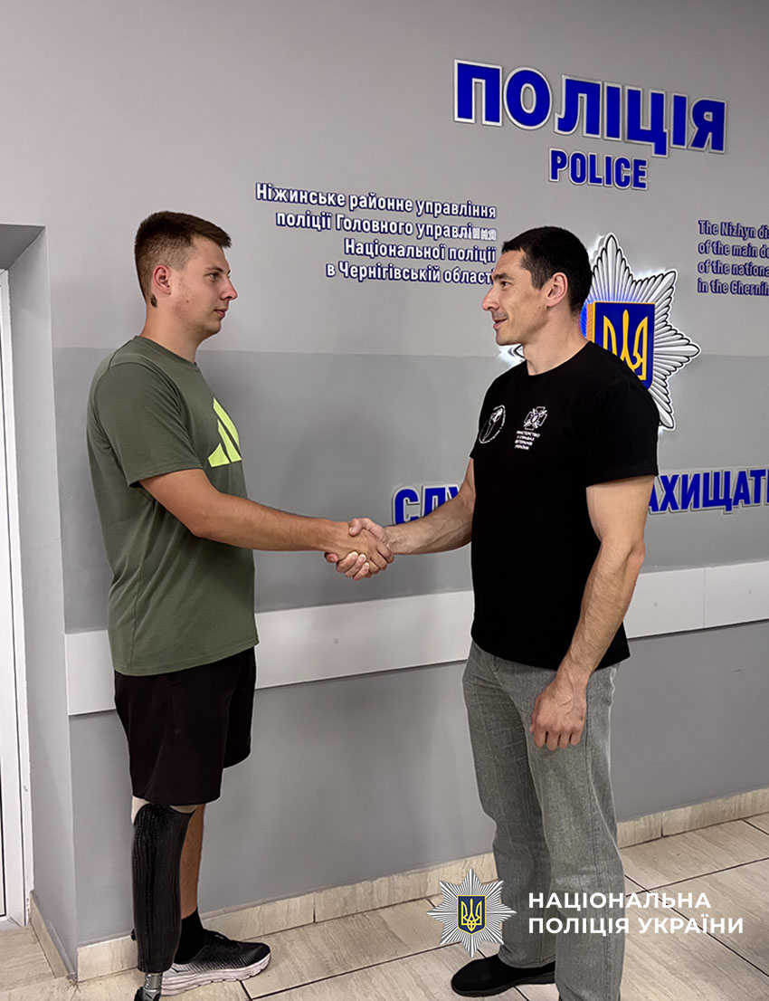 Ветерану Максиму Ященку – всього 21 рік. За його плечима запеклі бої з окупантами та штурмові операції на фронті у складі полку «Сафарі» бригади Нацполіції «Лють», важке поранення, втрата кінцівки, лікування, протезування та реабілітація. Нині Максим працює у Ніжинському райуправлінні поліції, здобуває вищу освіту та бере участь у спортивних ветеранських змаганнях.