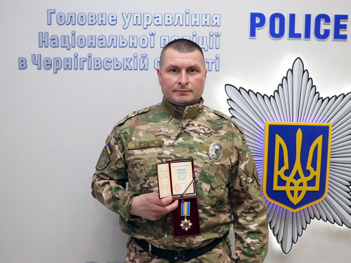 «З першого дня ми приступили до виконання бойових завдань з оборони Чернігівщини. Спочатку прибули до приміського села Количівка, організовували там пропускний режим. Потім виконували завдання безпосередньо в самому Чернігові. 28 лютого 2022 року наш підрозділ спільно з військовими зайняли позиції в Киїнці, адже очікували наступ піхоти з цього напрямку. Однак росіяни з «Ураганів» і «Смерчів» обстріляли село. На жаль, загинули наші побратими-поліцейські, військовослужбовці та мирні мешканці села. Багато людей в той день зазнали поранень. Ми допомагали постраждалим та вивозили поранених».