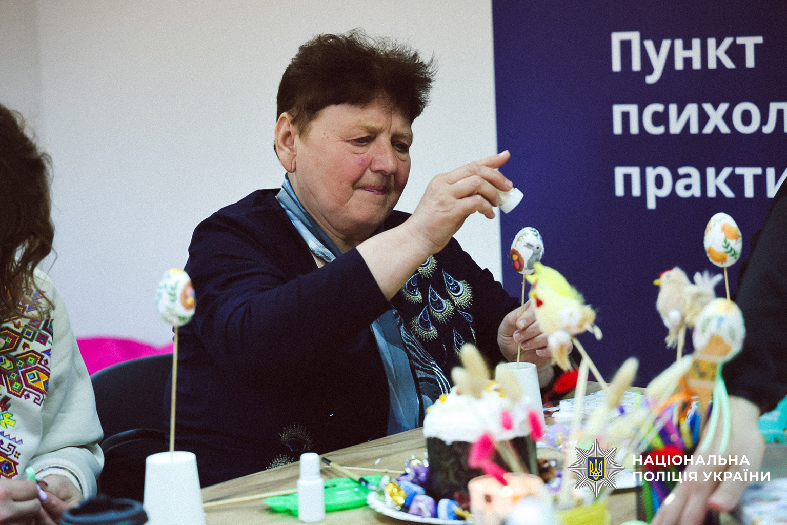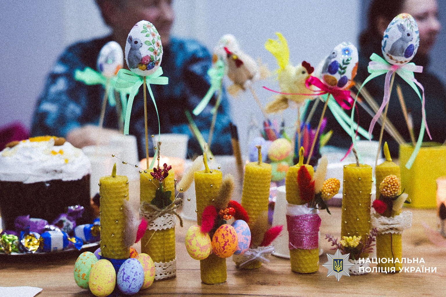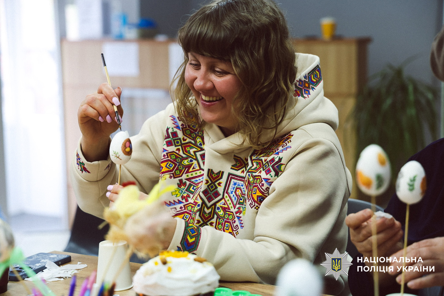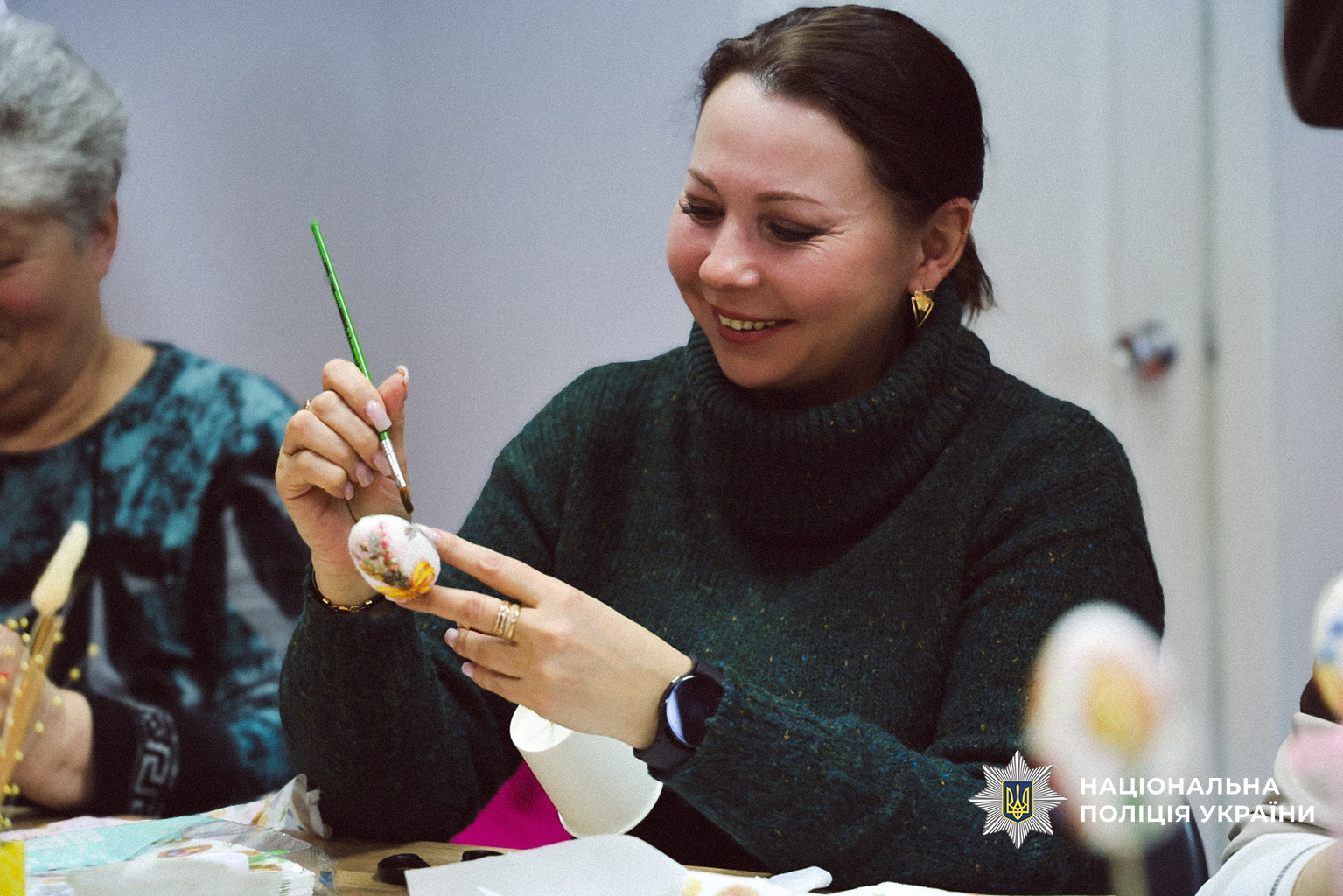 Психологи поліції Чернігівської області спільно з благодійним фондом ADRA Україна організували та провели теплий і щирий творчий майстер-клас із виготовлення великоднього декору. На творчому заході зібралися матері та дружини загиблих поліцейських. Ті, хто щодня живуть із пам’яттю про найдорожчих, відданих службі та Україні до останнього подиху.