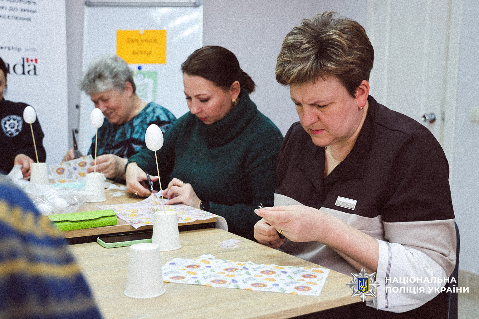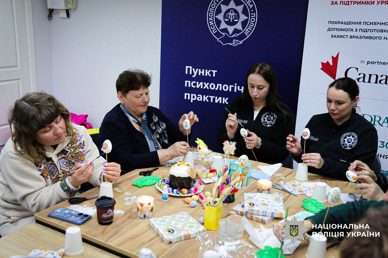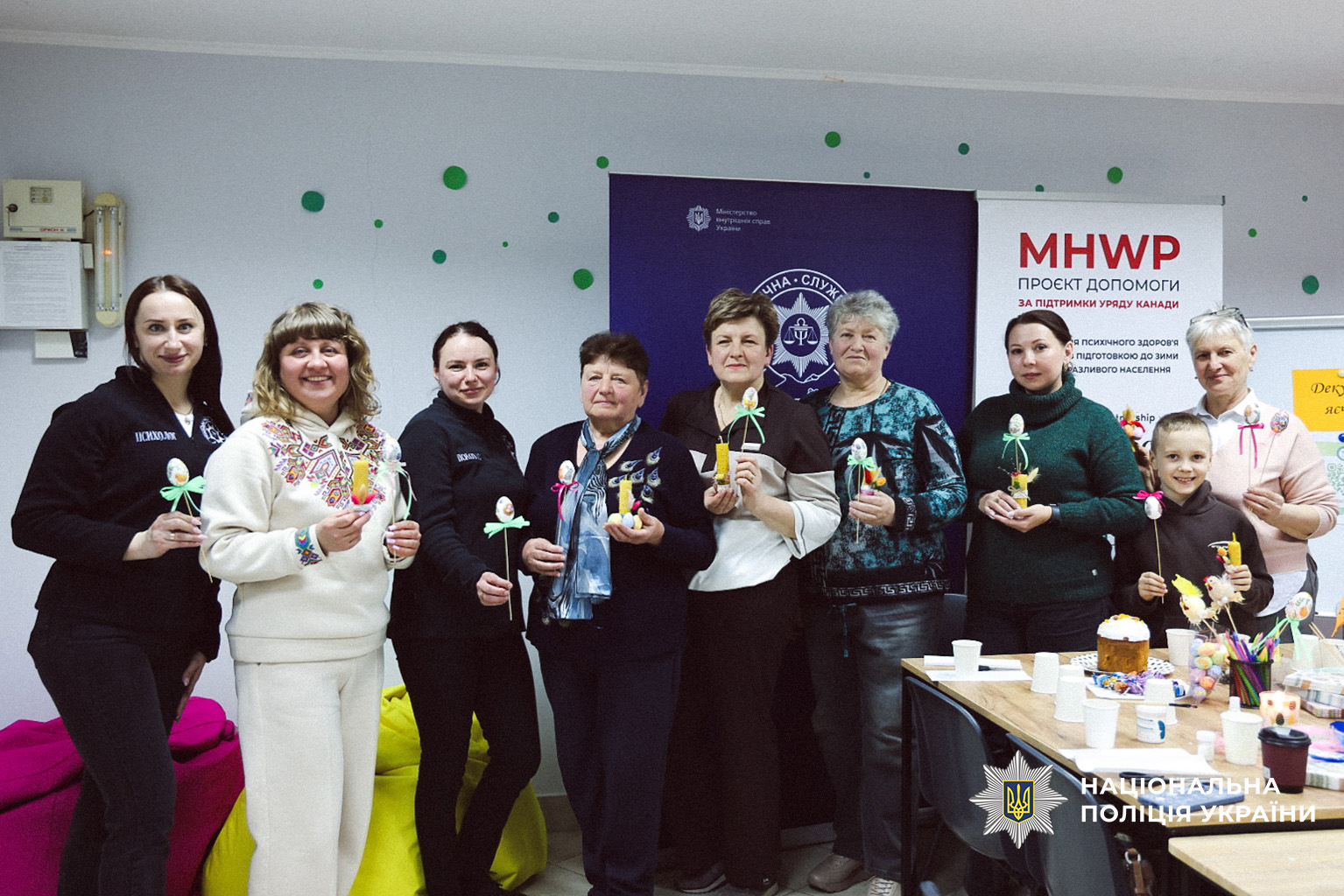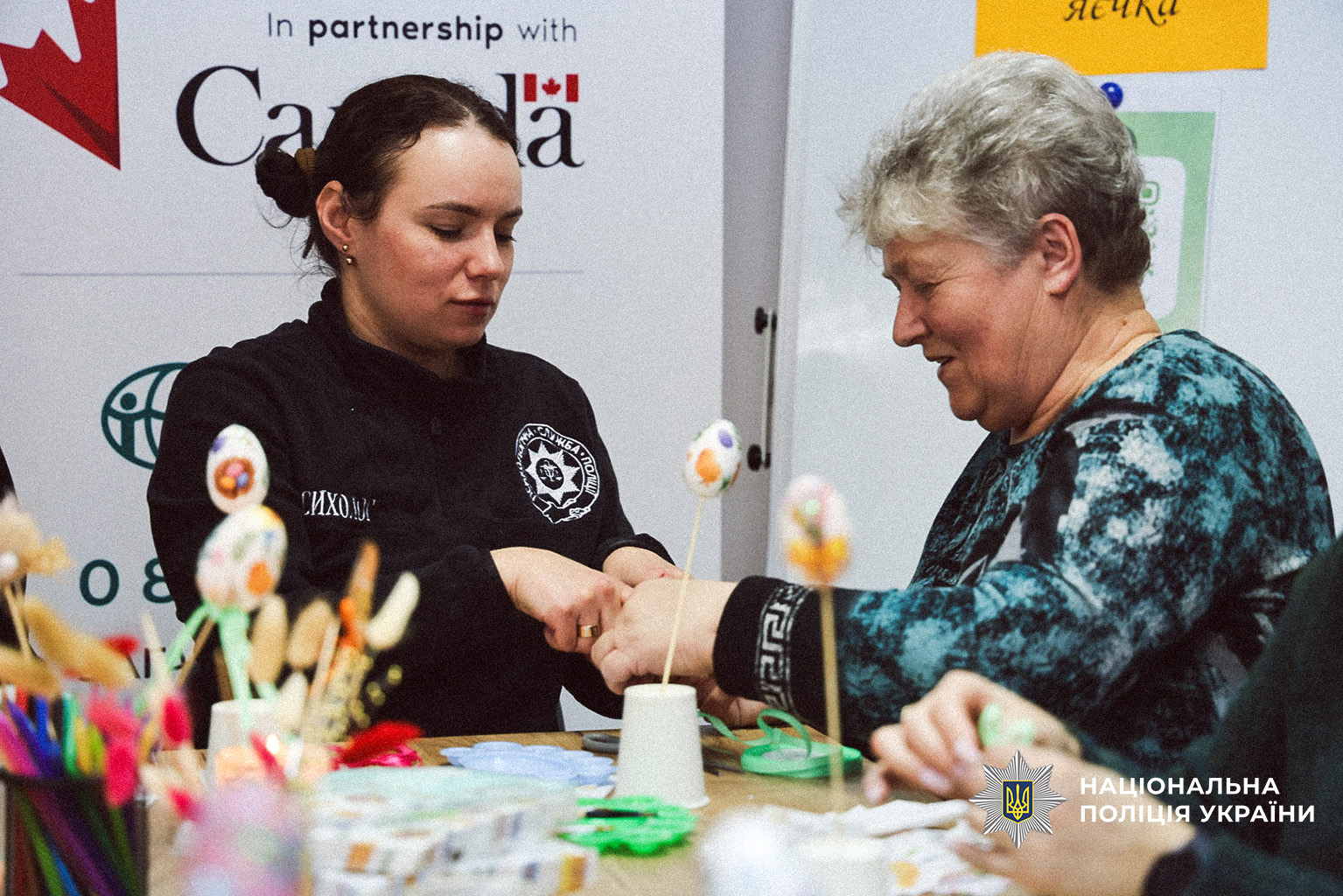Психологи поліції Чернігівської області спільно з благодійним фондом ADRA Україна організували та провели теплий і щирий творчий майстер-клас із виготовлення великоднього декору. На творчому заході зібралися матері та дружини загиблих поліцейських. Ті, хто щодня живуть із пам’яттю про найдорожчих, відданих службі та Україні до останнього подиху.