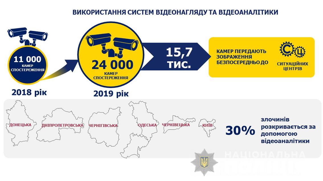 30% злочинів розкривається за допомогою системи відеоспостереження. Вона допомагає розкривати «вуличні» злочини, ДТП або якщо потенційні злочинці могли потрапити в поле зору відеокамери. Наприклад, встановити хто причетний до крадіжки чи вирахувати на якому автомобілі й куди рухалися підозрювані.
