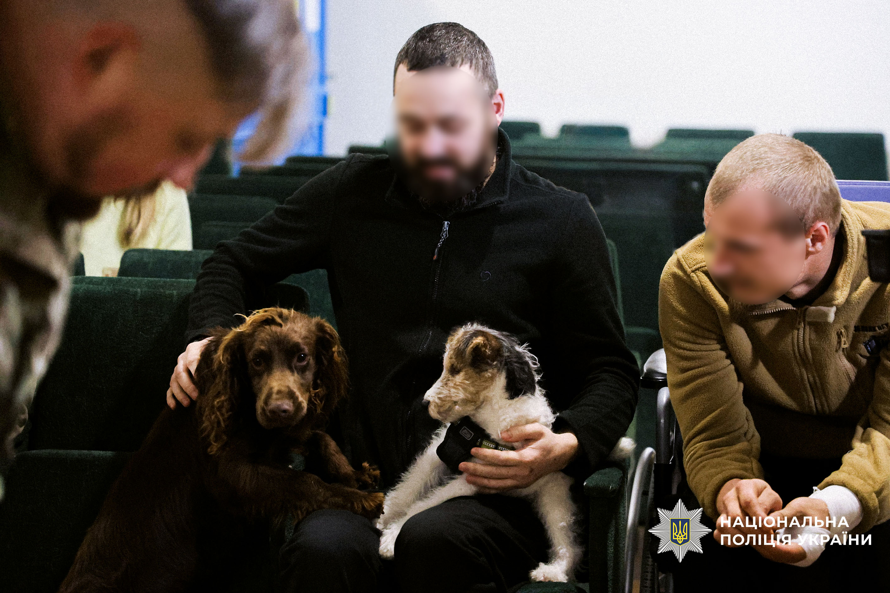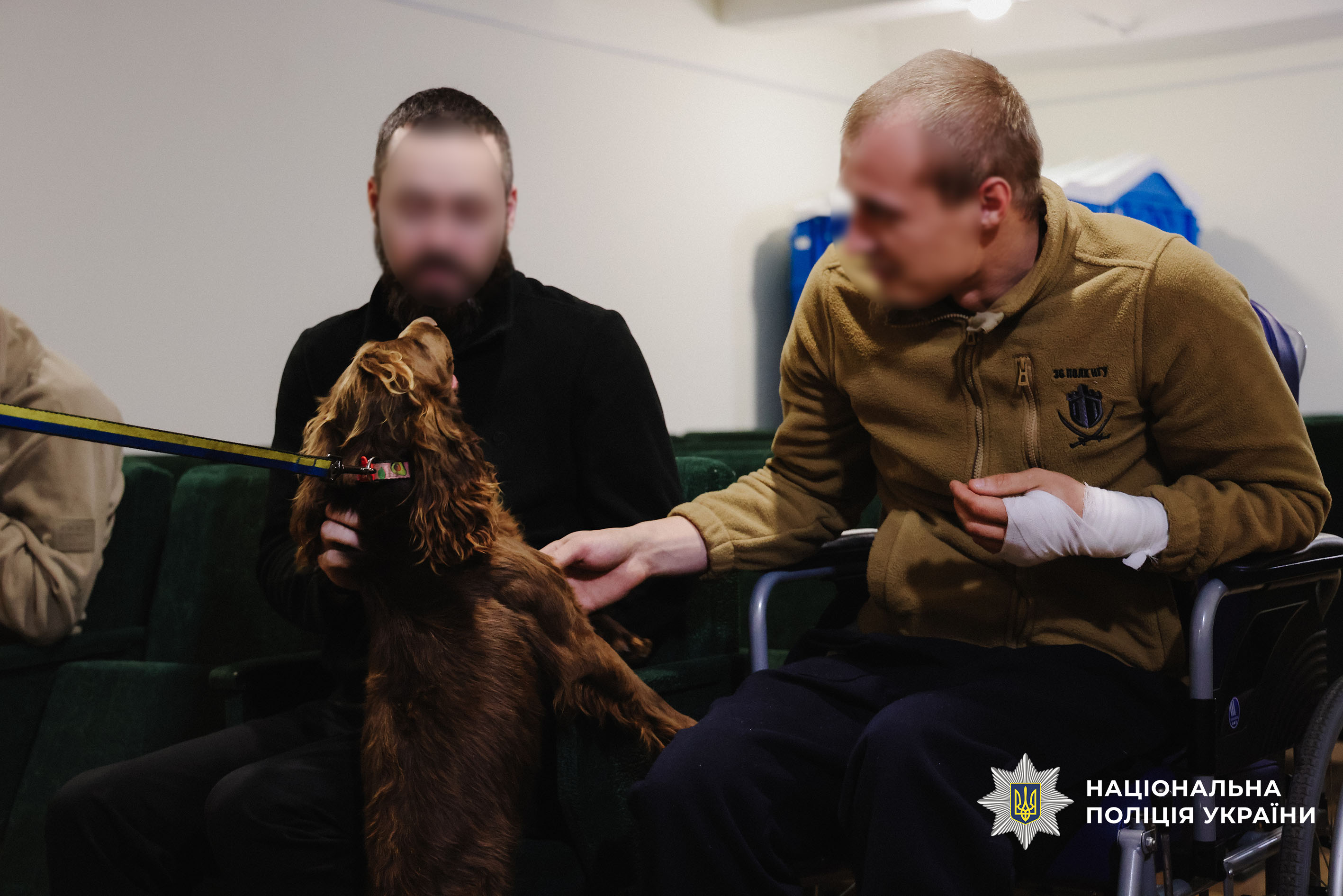Поліцейські психологи та кінологи спільно з колегами з сектору соціального захисту і супроводу постраждалих та членів їх сімей ДУ «ТМО МВС України по Чернігівській області» організували для поранених захисників захід із застосуванням каністерапії – методу психоемоційної підтримки, що базується на взаємодії людини з собакою. Чотирилапі помічники допомагали створити теплу, довірливу атмосферу, яка сприяла зниженню рівня стресу, покращенню емоційного стану та настрою поранених.