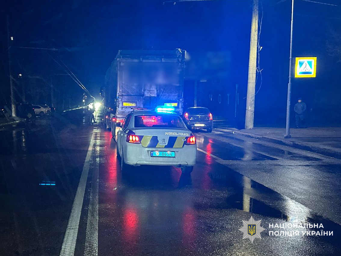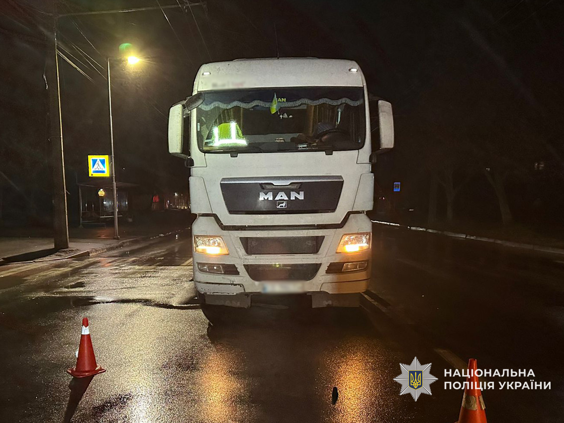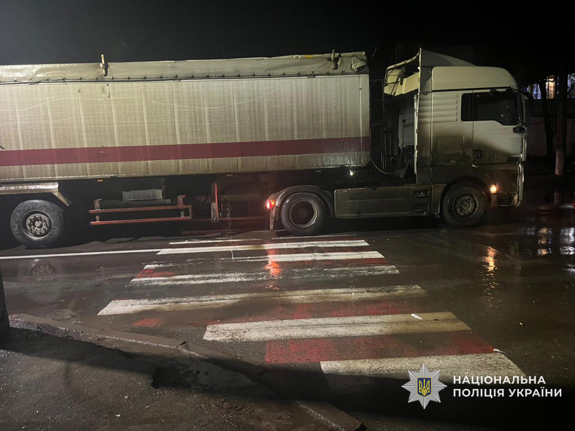 Поліцейські встановили, що 64-річний водій вантажного тягача марки «МАN» у щепленні з напівпричепом здійснив наїзд на жінку-пішохода, яка перетинала проїжджу частину по нерегульованому пішохідному переходу зліва направо відносно руху вантажного тягача. Внаслідок наїзду 84-річна пенсіонерка отримала тілесні ушкодження та була доставлена до лікарні, де від отриманих травм померла.
