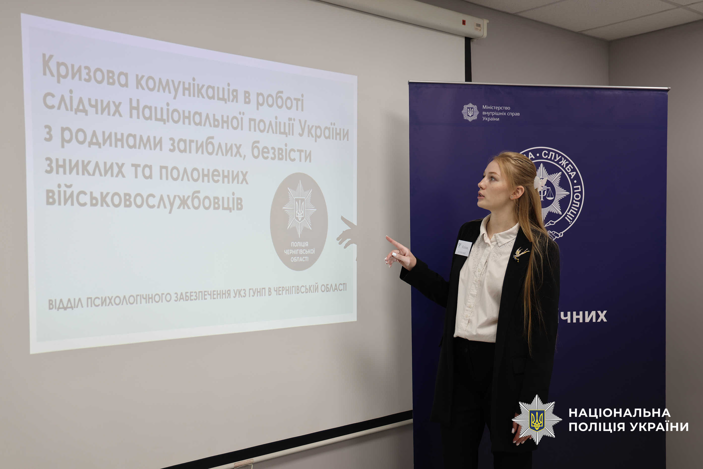 Психологи поліції Чернігівщини провели для слідчих тренінг з особливостей комунікації з родинами загиблих і безвісти зниклих захисників.