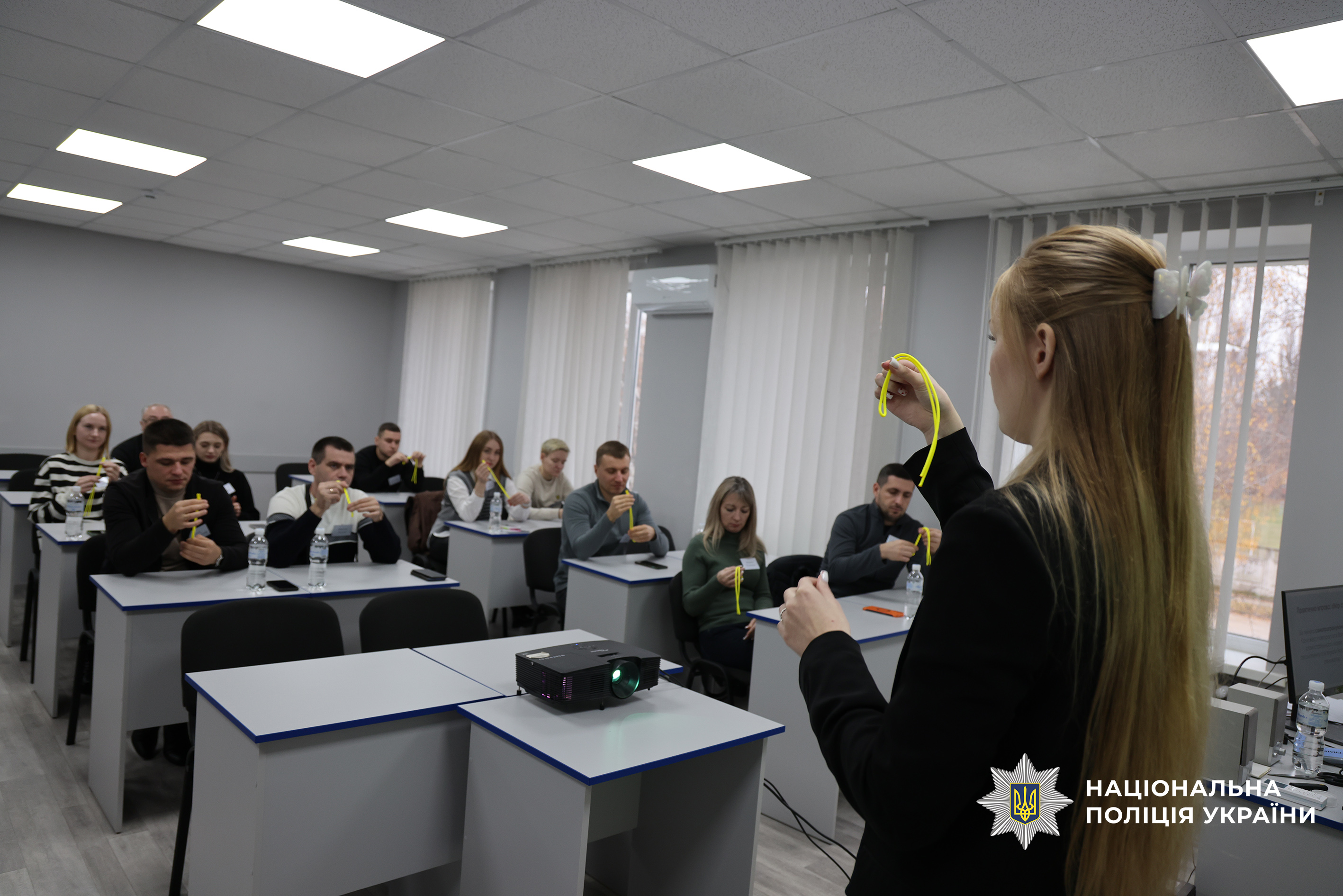 Поліцейські психологи розповіли учасникам тренінгу, як діяти та підтримувати контакт у кризових ситуаціях, виявляти емпатію й запобігати конфліктним ситуаціям під час спілкування з постраждалими. Адже від уміння поліцейського зберігати спокій, уважно слухати та підтримувати людей залежить психологічний стан тих, хто пережив травматичні події.