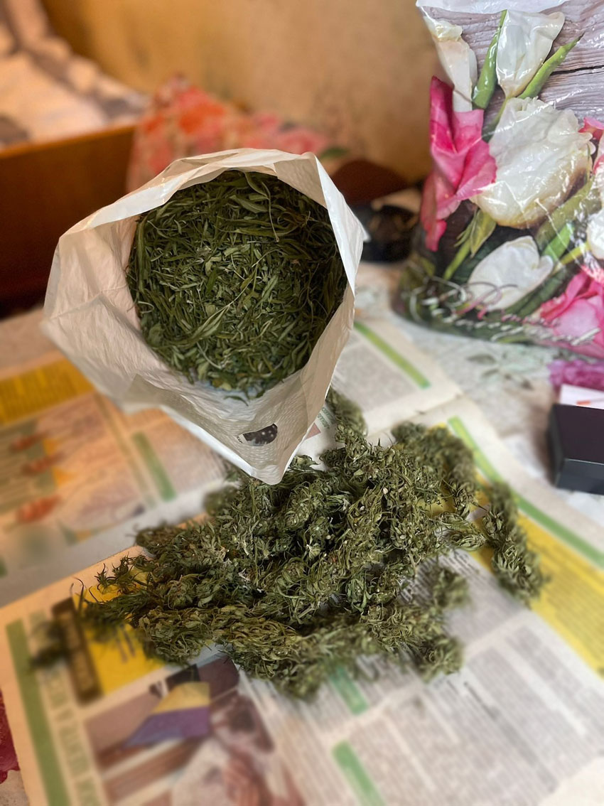 В ході обшуку правоохоронці виявили та вилучили висушену рослинну речовину загальною вагою близько трьох кілограмів, кустарний пристрій для куріння наркомістких речовин, інші речові докази.