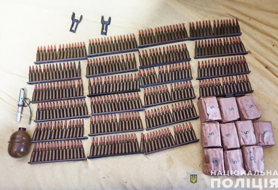 В ході слідчої дії поліцейські виявили ручну гранату та близько семи сотень набоїв до автоматичної стрілецької зброї. Речові докази були вилучені та направлені на експертне дослідження.