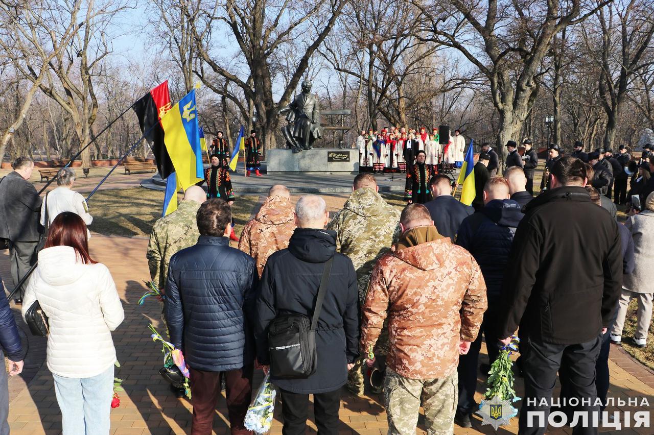 Щоб вшанувати його памʼять заступник начальника ГУНП в Чернігівській області Віталій Сандул разом з представниками обласної та міської влади, сил безпеки і оборони, правоохоронних відомств та чернігівцями, які не байдужі до слова великого генія України, зібралися біля пам’ятника Кобзареві на історичному Валу в Чернігові.
