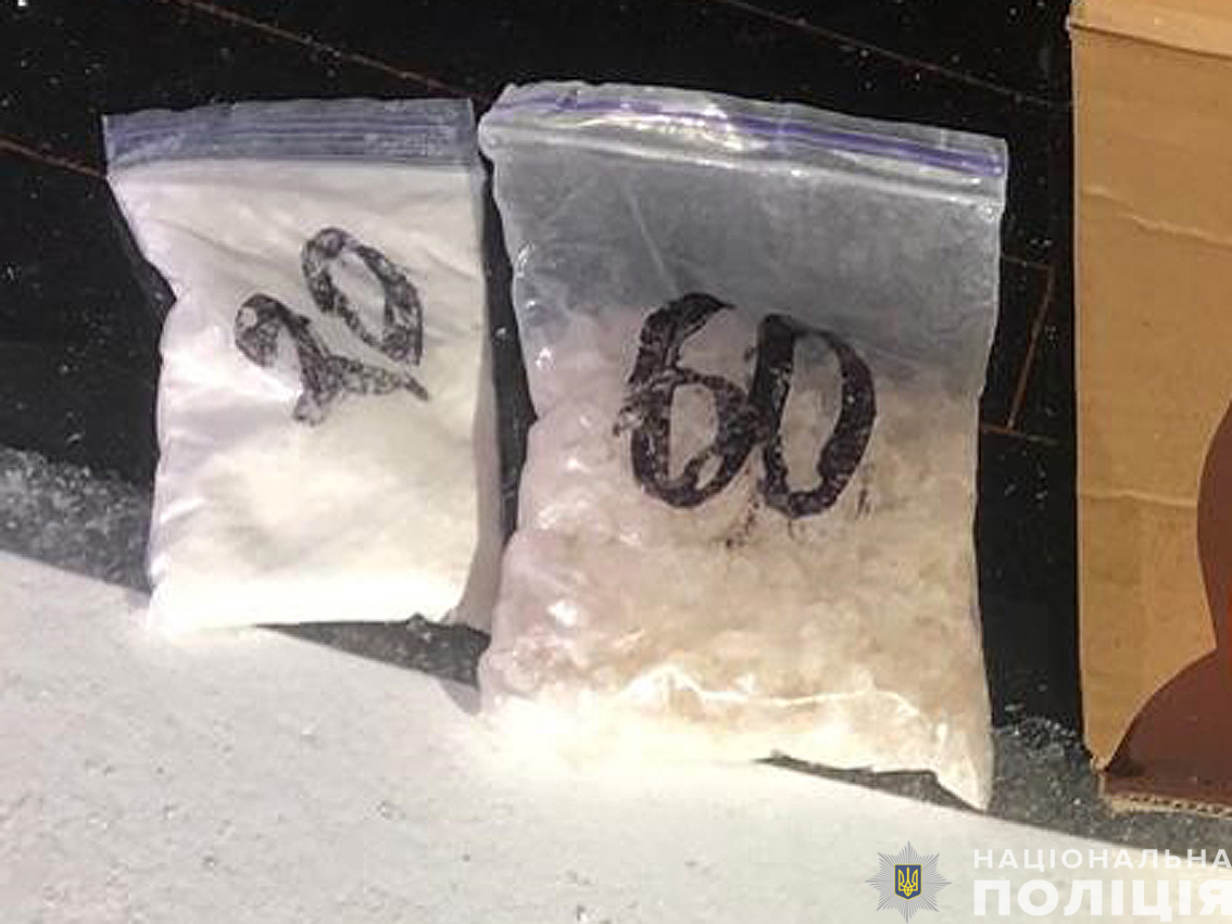 Поліцейські провели затримання підозрюваного у роздрібному наркодилерстві якраз у момент, коли молодик щойно отримав чергову партію забороненого «товару». Під час поверхневого огляду поліція виявила та вилучила у громадянина пакунок в якому знаходилось два зіп-пакети з порошкоподібною речовиною схожою на амфетамін та кристалоподібною речовиною, що схожа на «солі».