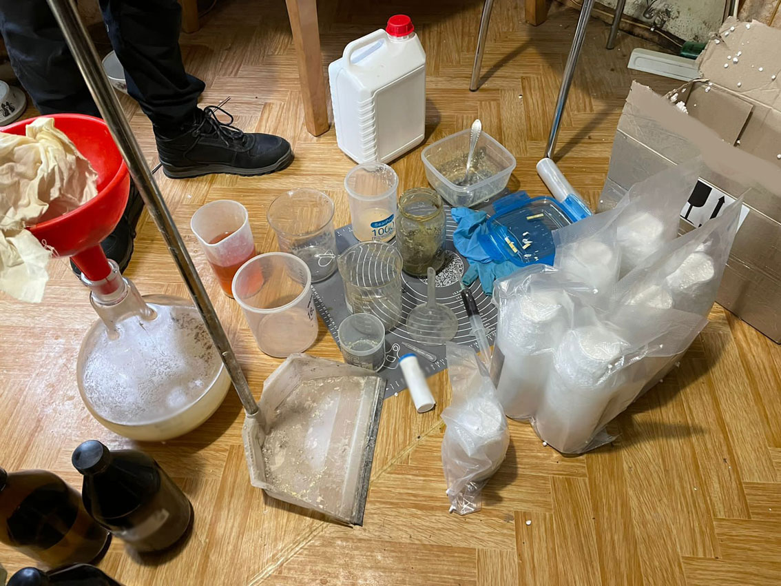 Правоохоронці провели санкціонований обшук в оселі 33-річного зловмисника. В ході слідчої дії поліцейські виявили та вилучили порошкоподібну речовину, схожу на амфетамін, а також прекурсори, кислоти та луги для забезпечення незаконного виробничого процесу. Там же поліція вилучила лабораторне обладнання, ваги та засоби фасування в спеціально обладнаному приміщенні.