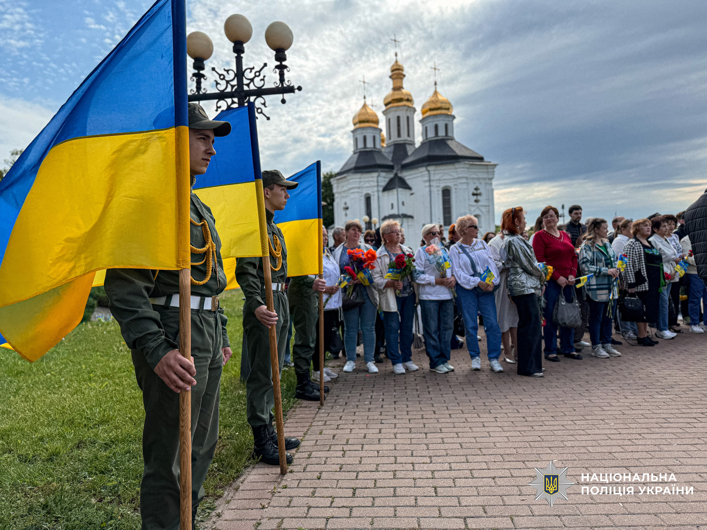 У пам’ятному заході взяли участь рідні полеглих захисників, начальник Головного управління Нацполіції у Чернігівській області Іван Іщенко, керівництво області, міста, сил безпеки й оборони та правоохоронних відомств Чернігівщини, духовенство, громадські активісти, небайдужі містяни.