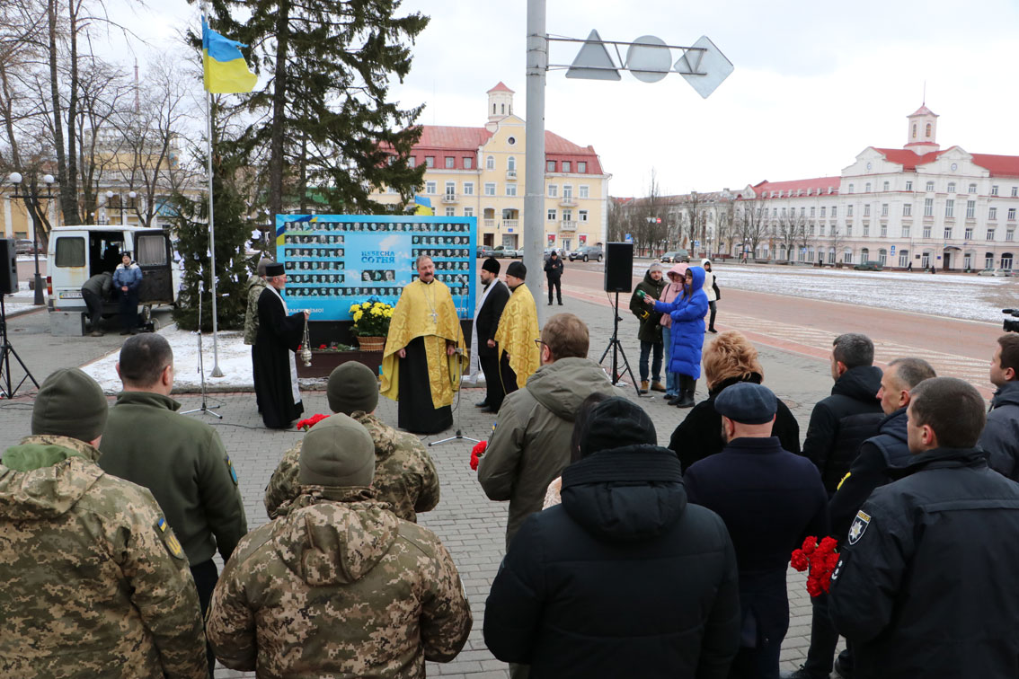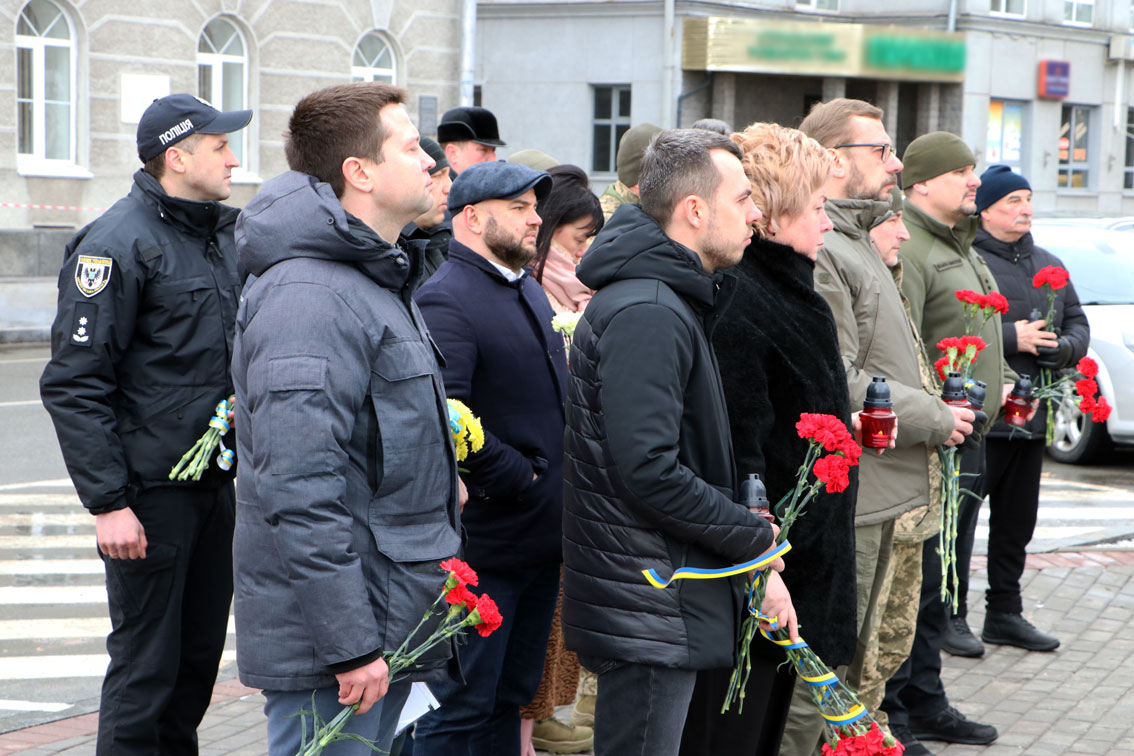 На захід, який проходив на Красній площі біля стели Героїв Небесної Сотні, зібралися представники обласної та міської влади, духовенство, військовослужбовці, правоохоронці, громадські активісти та небайдужі містяни.
