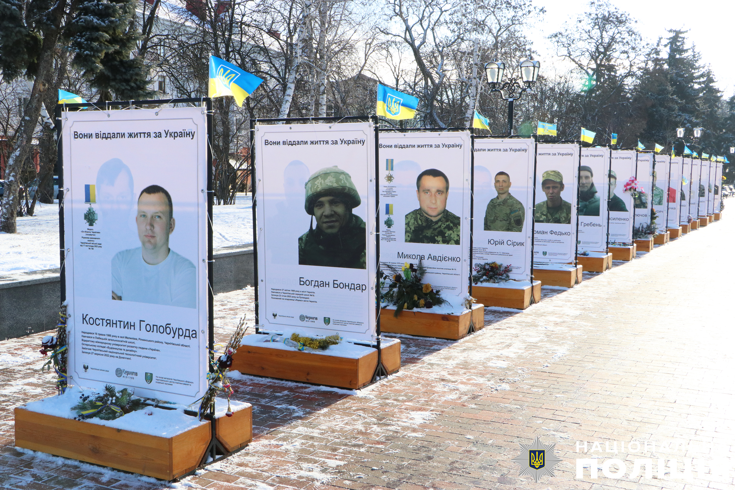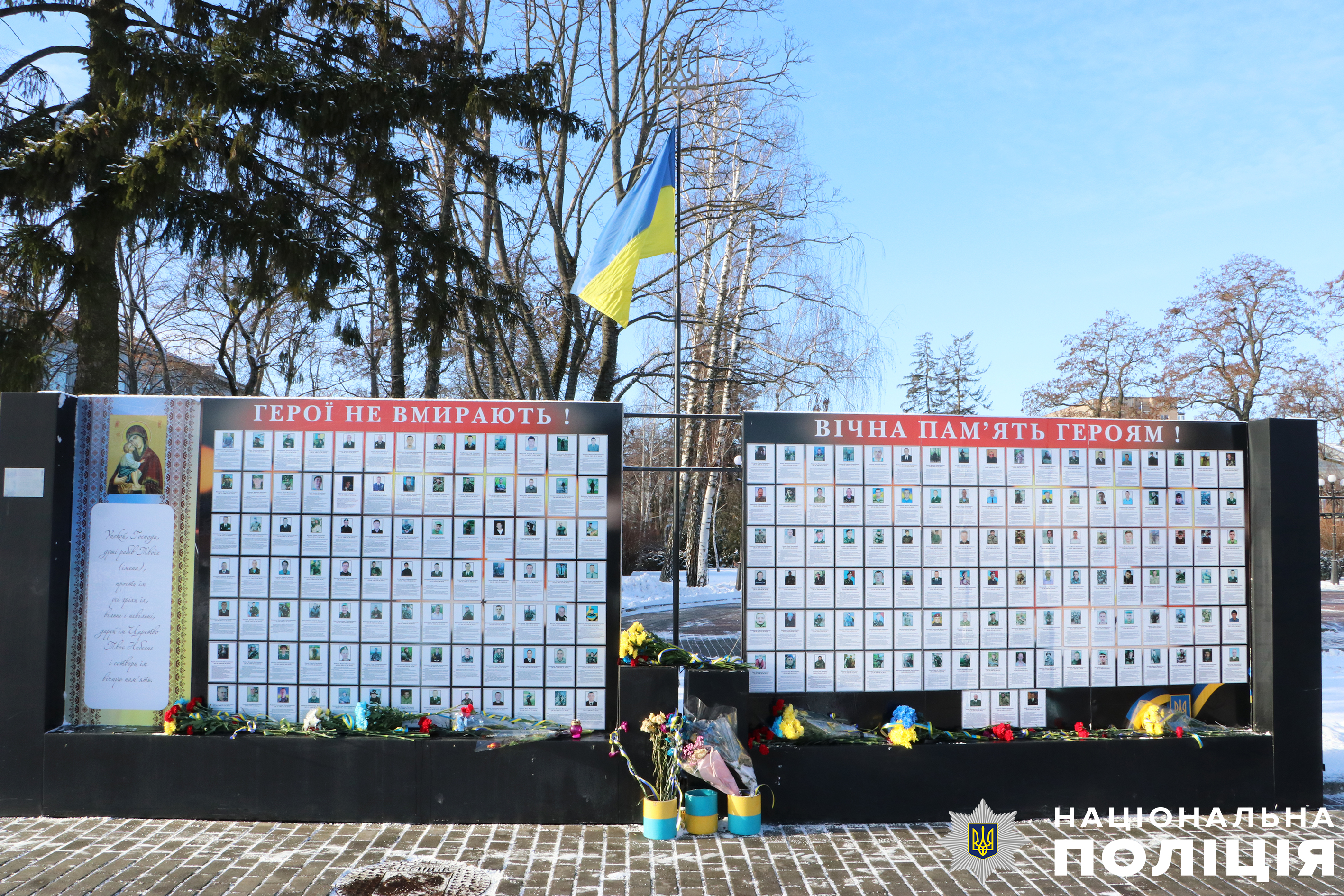 Присутні вшанували пам'ять загиблих Героїв хвилиною мовчання і поклали квіти до меморіальної стели Героям Небесної сотні та меморіальної стели загиблим воїнам. Учасники пам’ятного заходу також поклали квіти до портретів загиблих захисників на Алеї Героїв.