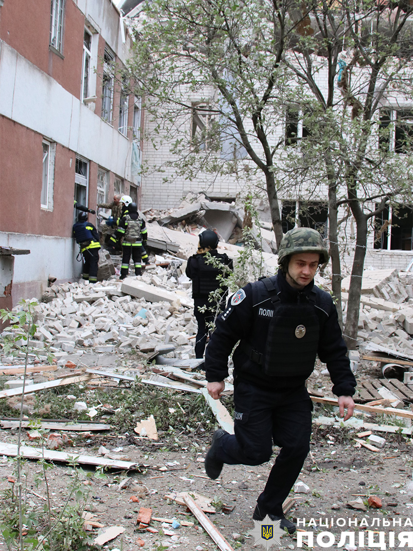 Слідчі та експерти-криміналісти проводять побудинкові обходи, фіксують наслідки ворожих влучань.