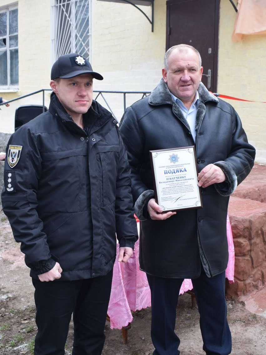 За сприяння у впровадженні проєкту «Поліцейський офіцер громади» на Ніжинщині Володимир Нідзельський вручив подяку голові Носівської ОТГ Володимиру Ігнатченку.