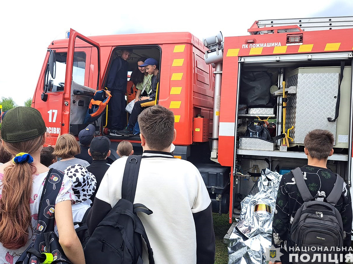 Для учнів організували локації за кожним напрямком цивільного захисту. На них діти дізналися про види поліцейської діяльності, проведення рятувальних та евакуаційних заходів, а також про надання першої домедичної допомоги. Бажаючі мали змогу приміряти елементи екіпіровки поліцейських.