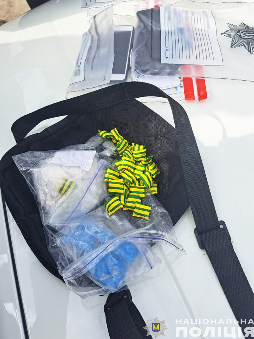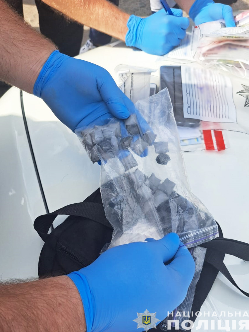 В ході проведення слідчих дій поліцейські виявили та вилучили у 26-річного пасажира авто підготовлені до збуту 154 згортки з речовинами, схожими на особливо небезпечні психотропні речовини – солі «Альфа-PVP» та амфетамін.