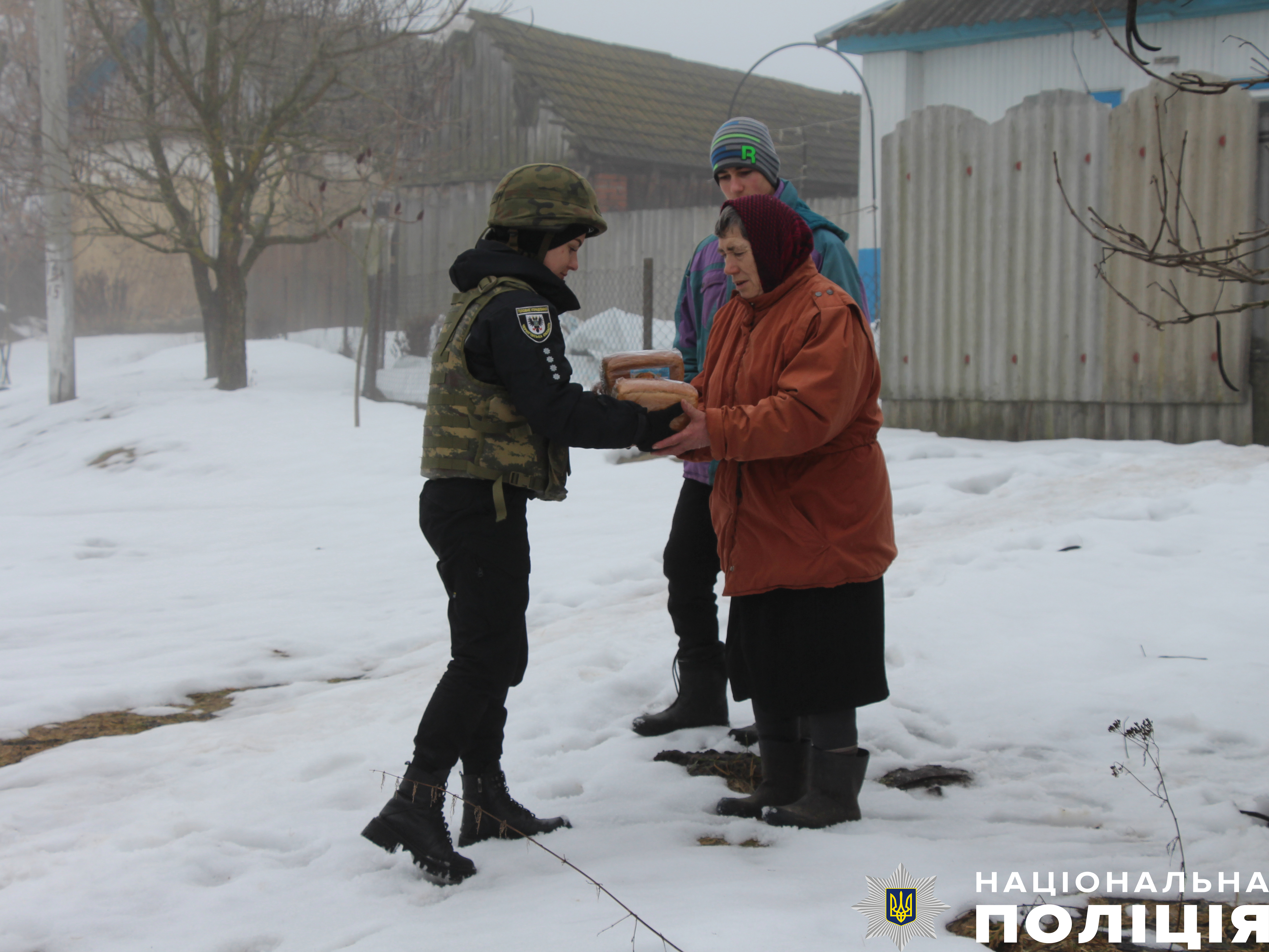 Кожній сім’ї поліцейські доставили продуктові набори та засоби гігієни, теплі ковдри, а декому й матраци – необхідні речі зібрали ніжинські волонтери з фонду «Наші люди всюди». І обов’язково поліцейські везли усім свіжий хліб, бо його в ці села привозять щонайкраще раз на чотири дні.