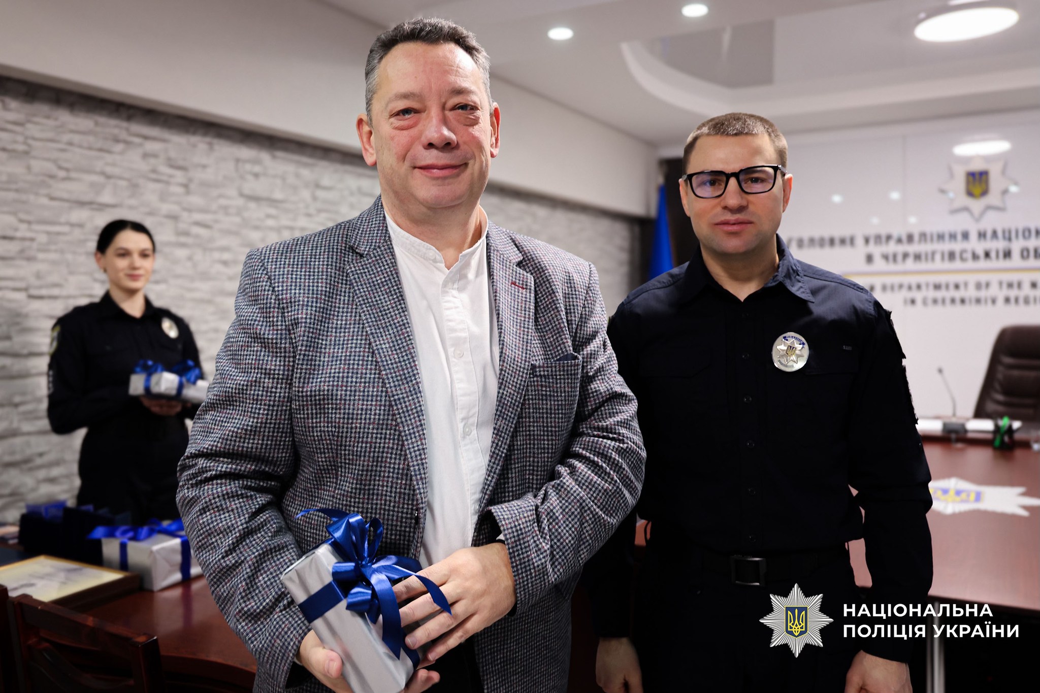 Голова Чернігівської обласної ветеранської організації Громадської організації «Асоціації ветеранів МВС України» Іван Маляренко звернувся до присутніх зі словами вдячності за важливу і ризиковану багаторічну працю.