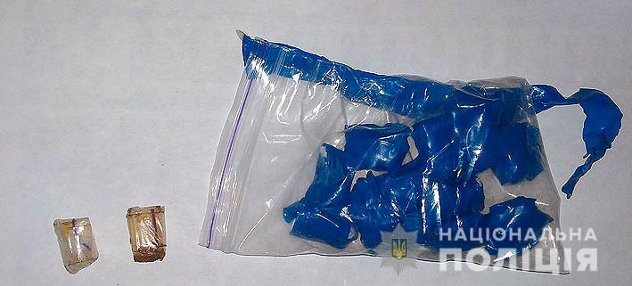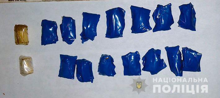 Жителя сусідньої області поліція викрила в ході перевірки оперативної інформації. Під час особистого огляду речей правоохоронці виявили у нього 16 згортків з речовиною, схожою на наркотики. Вилучене направлено на експертизу до науково-дослідного експертно-криміналістичного центру.