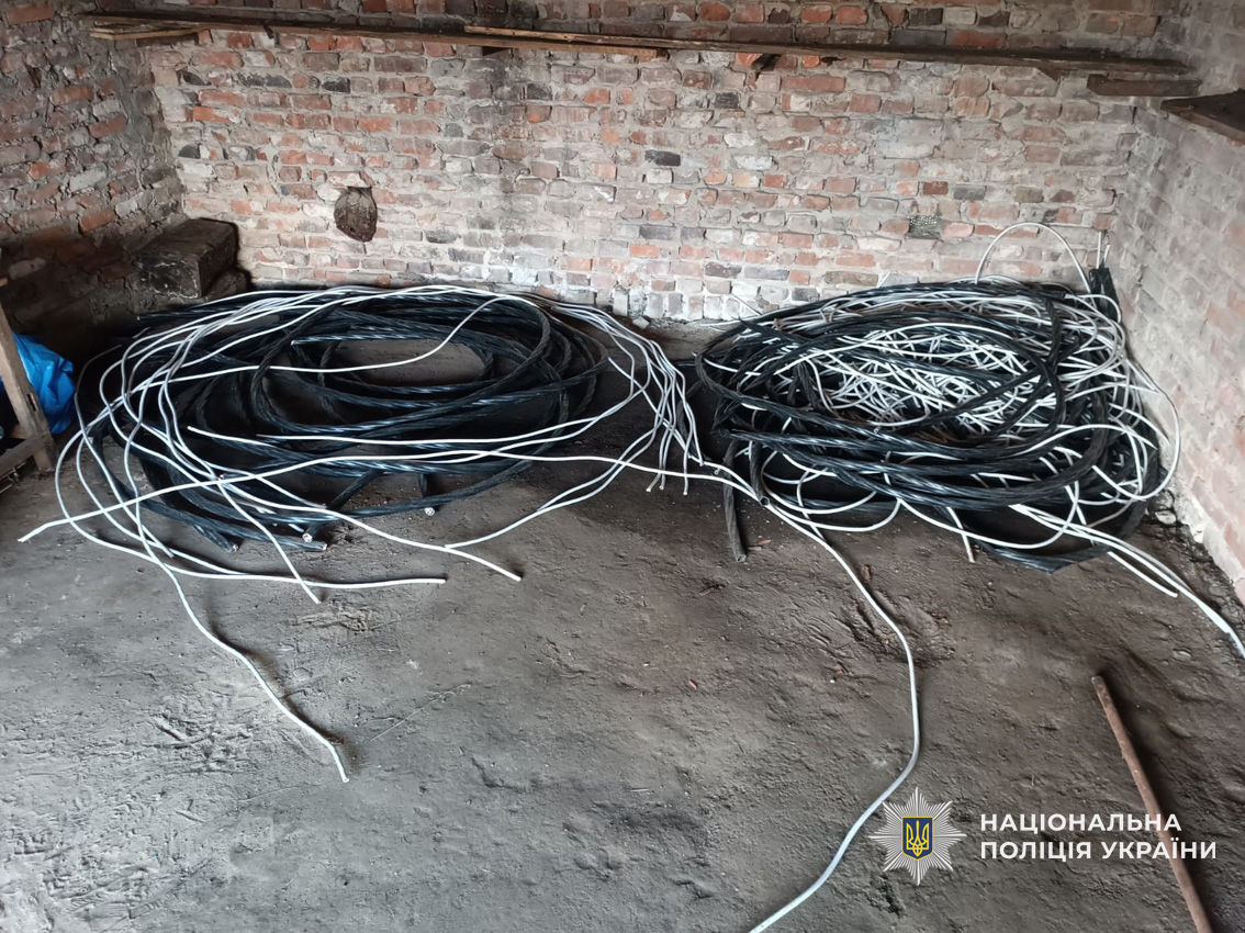 Під час подальших слідчих дій в гаражі фігуранта поліцейські виявили і вилучили мідний та алюмінієвий кабель, камери відеоспостереження, а також інструмент.