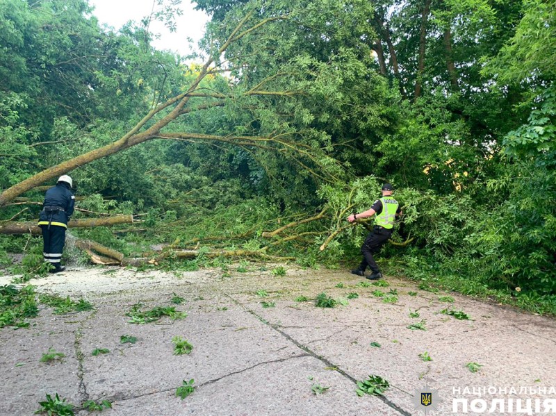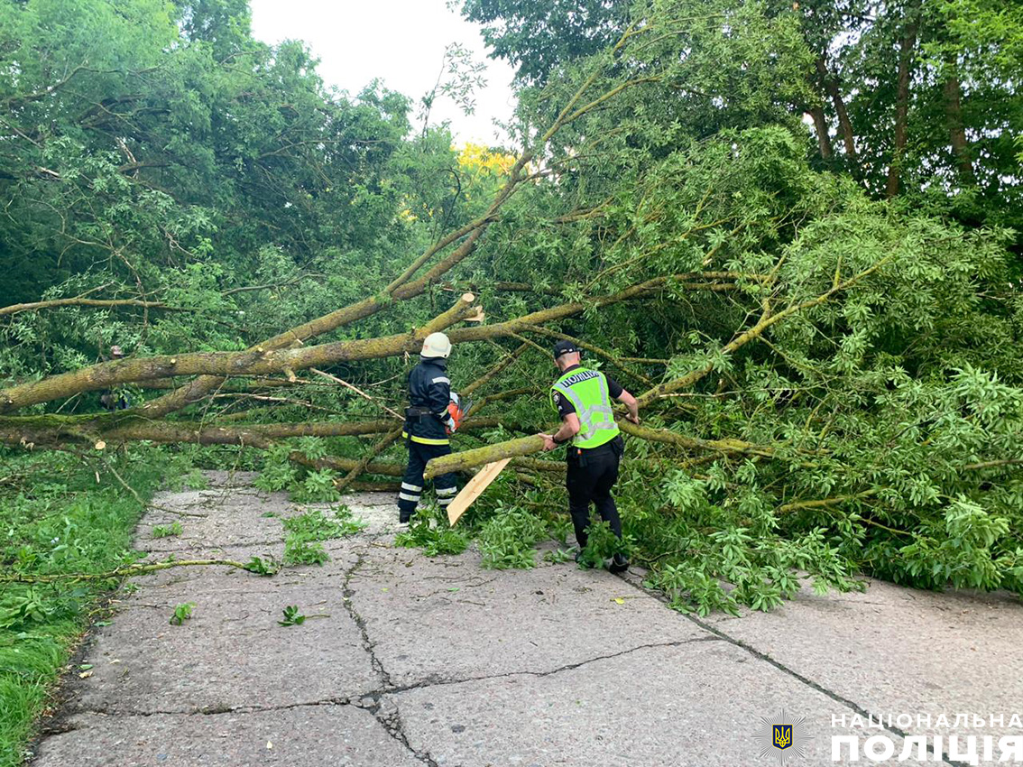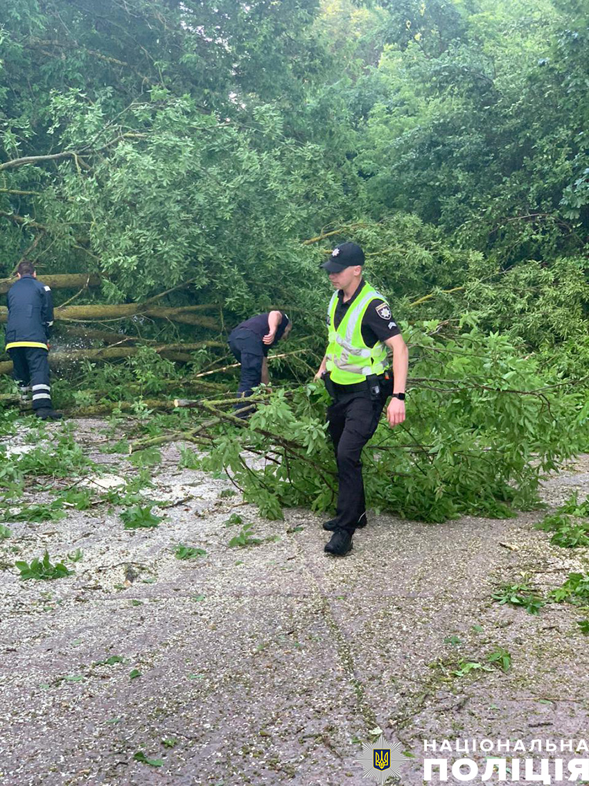 Співробітники сектору реагування патрульної поліції спільно з рятувальниками невідкладно прибули на виклик. На місці події поліцейські виявили, що декілька дерев через сильний дощ та вітер були повалені на дорогу та перегородили автошлях.