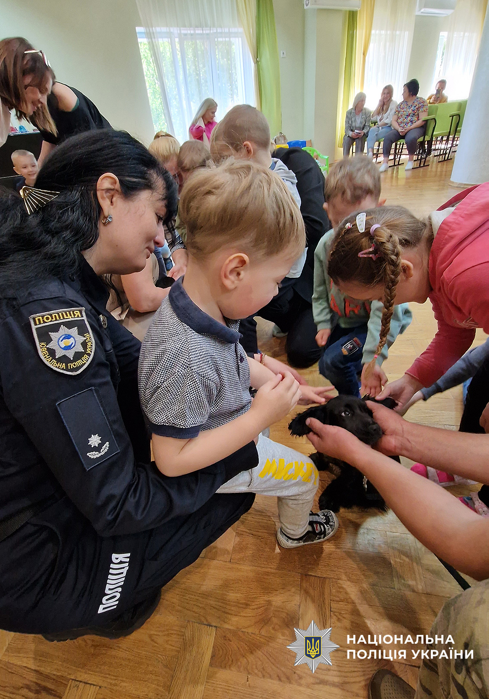 Ювенальні поліцейські разом з кінологами зі службовими собаками провели інтерактивний захід у обласному центрі комплексної реабілітації дітей з інвалідністю «Відродження». Чотирилапі помічники поліцейських Гільза та Дрон подарували дітям море радості, щирих емоцій і теплоти.