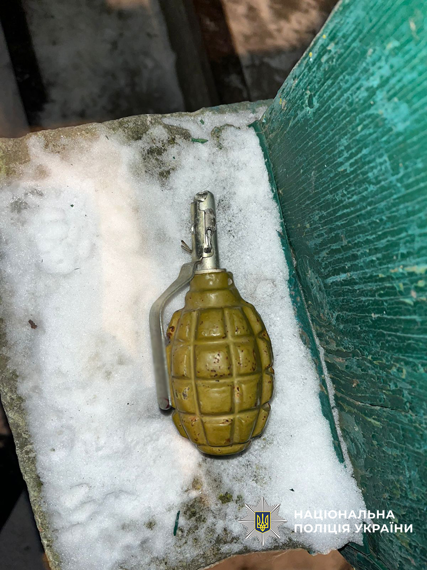 Правоохоронці виявили та вилучили у 28-річного зловмисника предмет, зовні схожий на гранату «Ф-1». Вилучене поліцейські направили на проведення експертних досліджень.