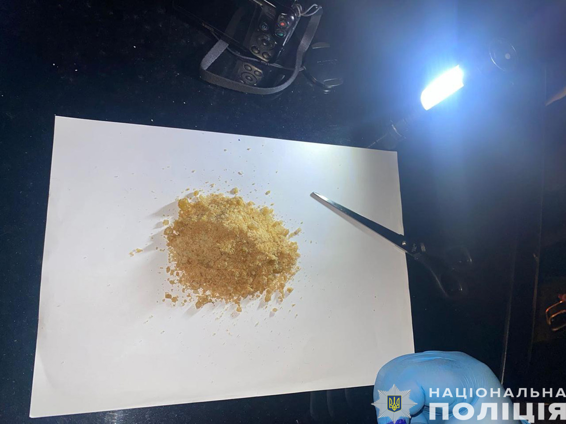В подальшому під час проведення невідкладного обшуку за місцем проживання у зловмисника було виявлено та вилучені ще близько десятка пакетів з кристалоподібною речовиною, електронні ваги з нашаруванням невідомої речовини. Вилучене поліція направила на проведення експертних досліджень.