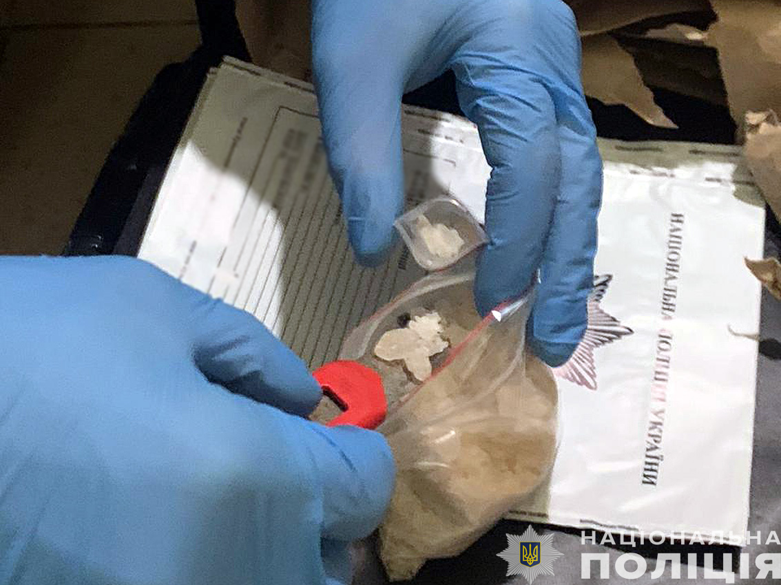 Поліцейські провели затримання підозрюваних у роздрібному наркодилерстві якраз у момент, коли вони щойно отримали чергову партію забороненого «товару». Під час поверхневого огляду поліція виявила та вилучила у одного з них поліетиленовий зіп-пакет з кристалоподібною речовиною схожою на психотропну речовину PVP-солі.