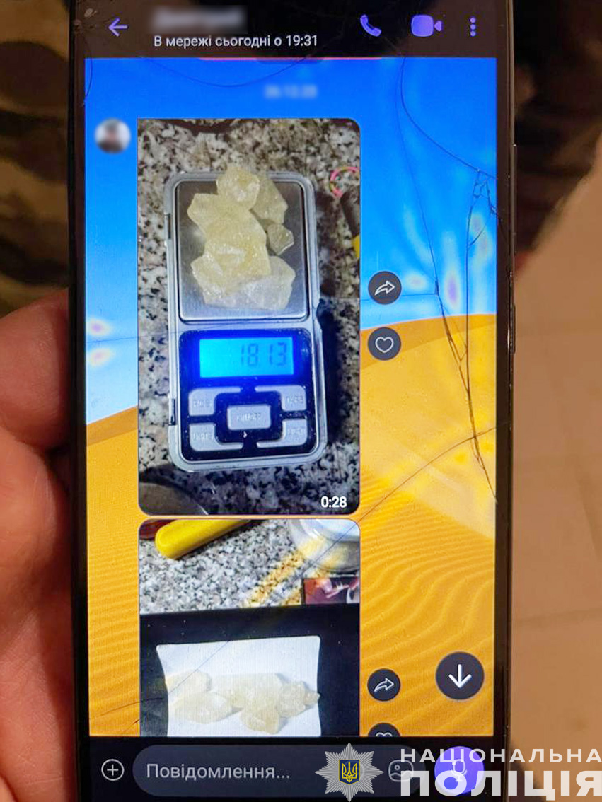 Під час огляду мобільного телефону зловмисника поліцейські виявили переписку, в якій наркодилер спілкується з «клієнтами» щодо розкладання схованих дрібних порцій психотропних речовин шляхом «закладок».