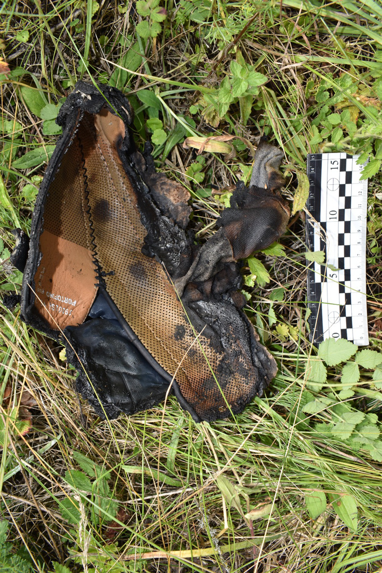 Поліцейські виявили людські рештки та низку речових доказів, зокрема сліди взуття та автомобільних коліс. Вилучене направили на проведення експертних досліджень.