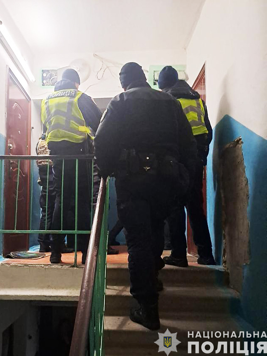 Для силової підтримки подальших дій поліцейські викликали бійців роти поліції особливого призначення. З дозволу власниці квартири, спецпризначенці вибили двері до помешкання. В одній з кімнат правоохоронці виявили зловмисника. Він поводився так само агресивно, демонструючи явні ознаки наркотичного сп’яніння.