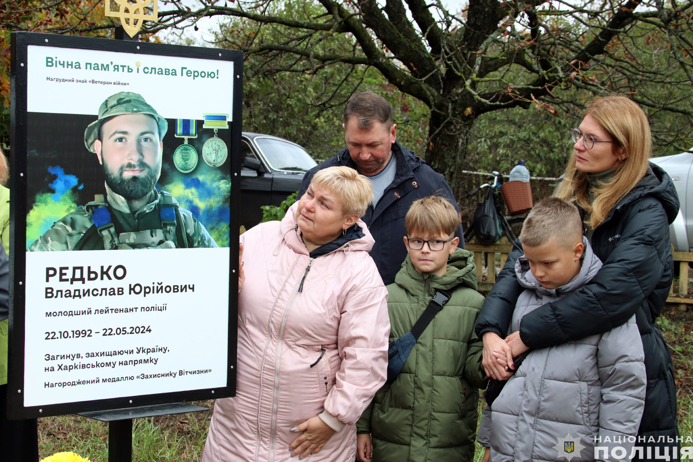 Сьогодні у Хмільниці Чернігівського району відкрили Алею Пам’яті – на стендах розмістили портрети та імена загиблих Героїв, які є уродженцями села. Серед них двоє поліцейських-спецпризначенців: Богдан Бондарчук та Владислав Редько.