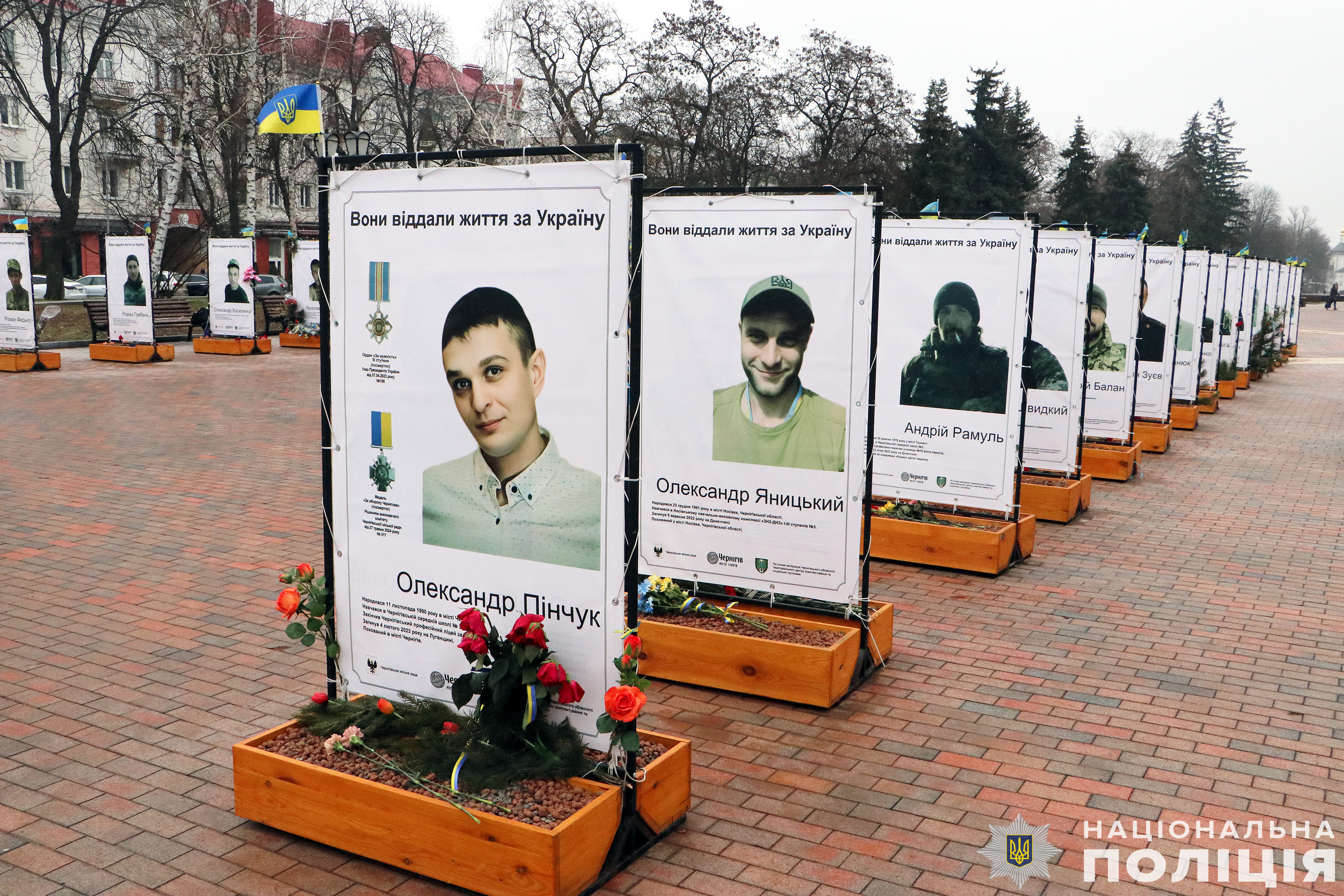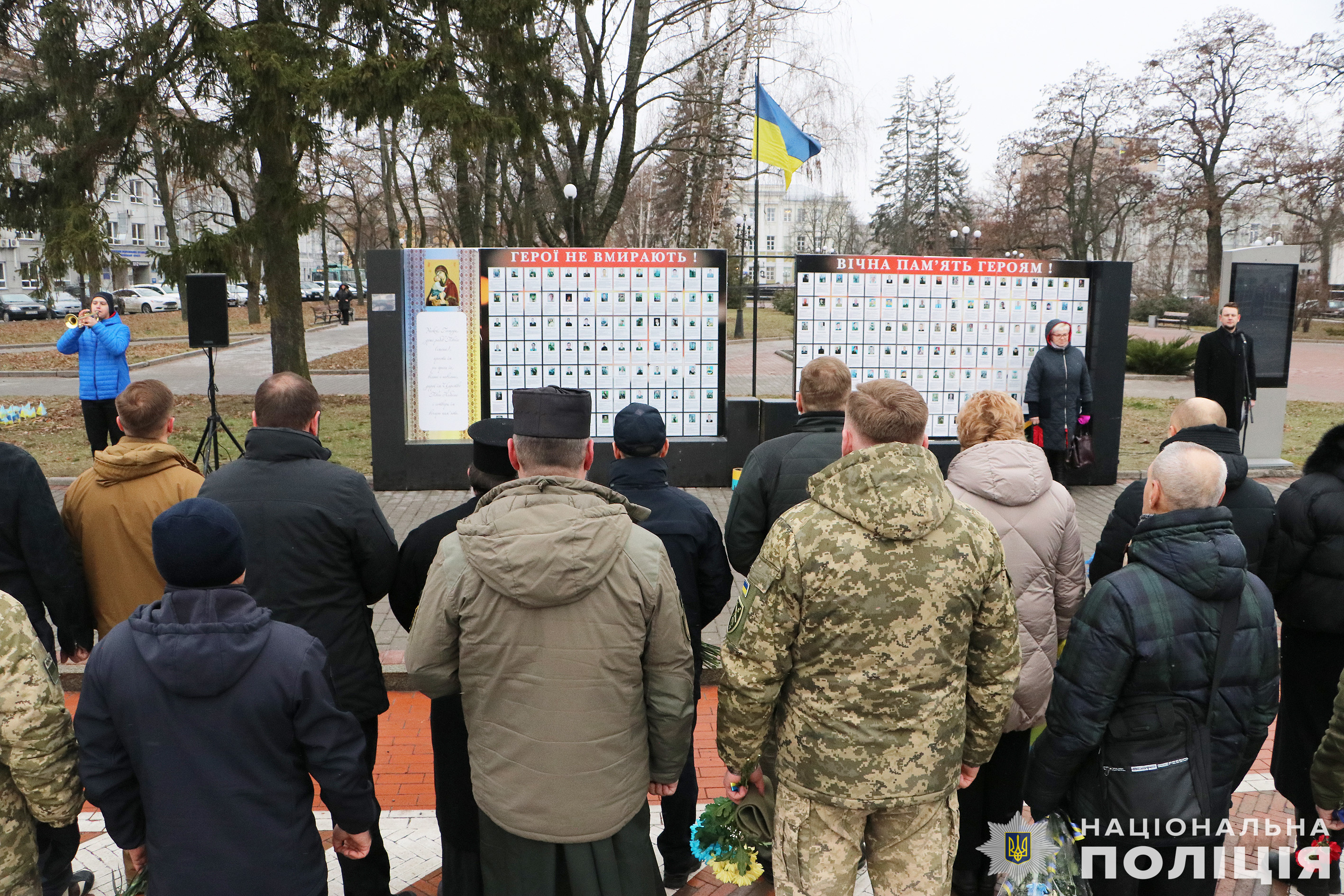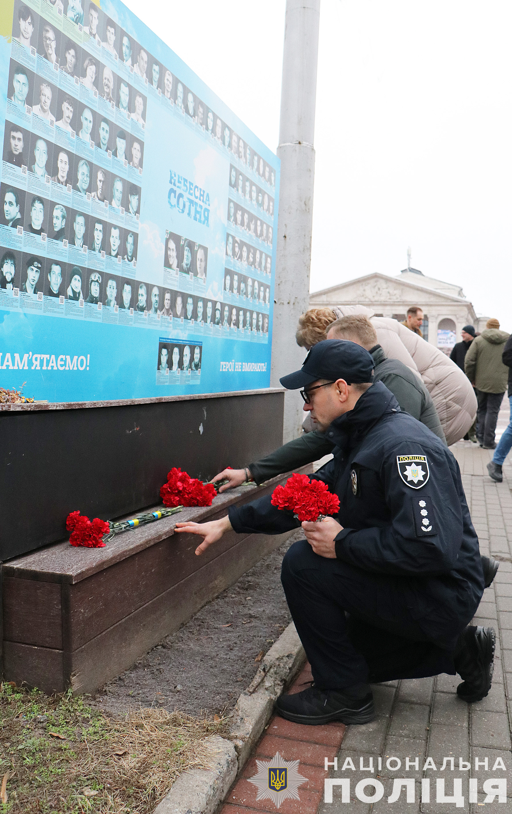 Присутні вшанували пам'ять загиблих Героїв хвилиною мовчання і поклали квіти до меморіальної стели Героям Небесної сотні та меморіальної стели загиблим воїнам. Учасники пам’ятного заходу також поклали квіти до портретів загиблих захисників на Алеї Героїв.
