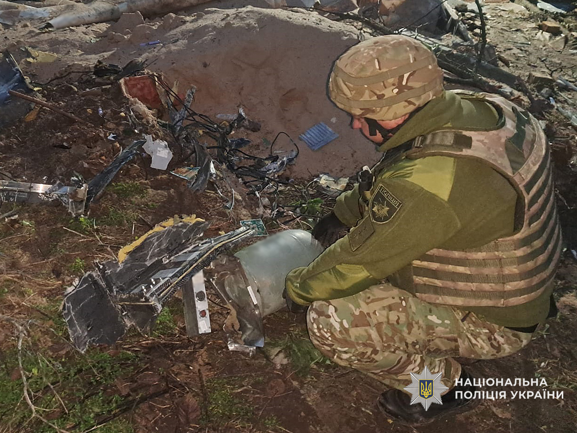 Вчора під час чергової атаки безпілотниками мирного населення Чернігова, до поліції надійшла інформація про падіння на територію приватного подвір’я російського реактивного дрона, 50-кілограмова бойова частина якого не здетонувала та становила загрозу для людей.