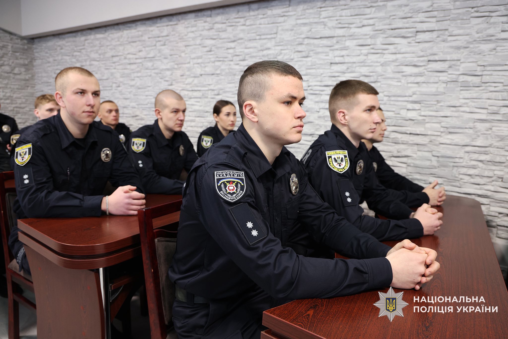 У подальшому з випускниками поспілкувалися начальник управління кадрового забезпечення ГУНП Антон Клановець, працівники обласного підрозділу Головної інспекції НПУ, відділу професійного навчання. Поліцейські психологи провели тестування для визначення рівня адаптації молодих фахівців до умов служби.