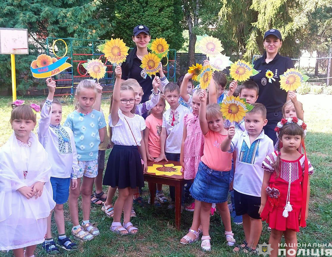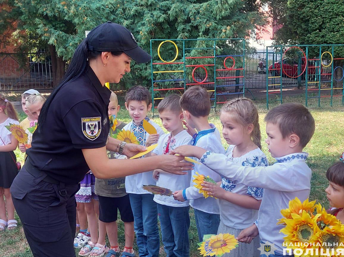Під час пам’ятного заходу правоохоронці розповіли дітям значення цього дня та пояснили, чому саме ці рослини є символом мужності, волі та життя України.