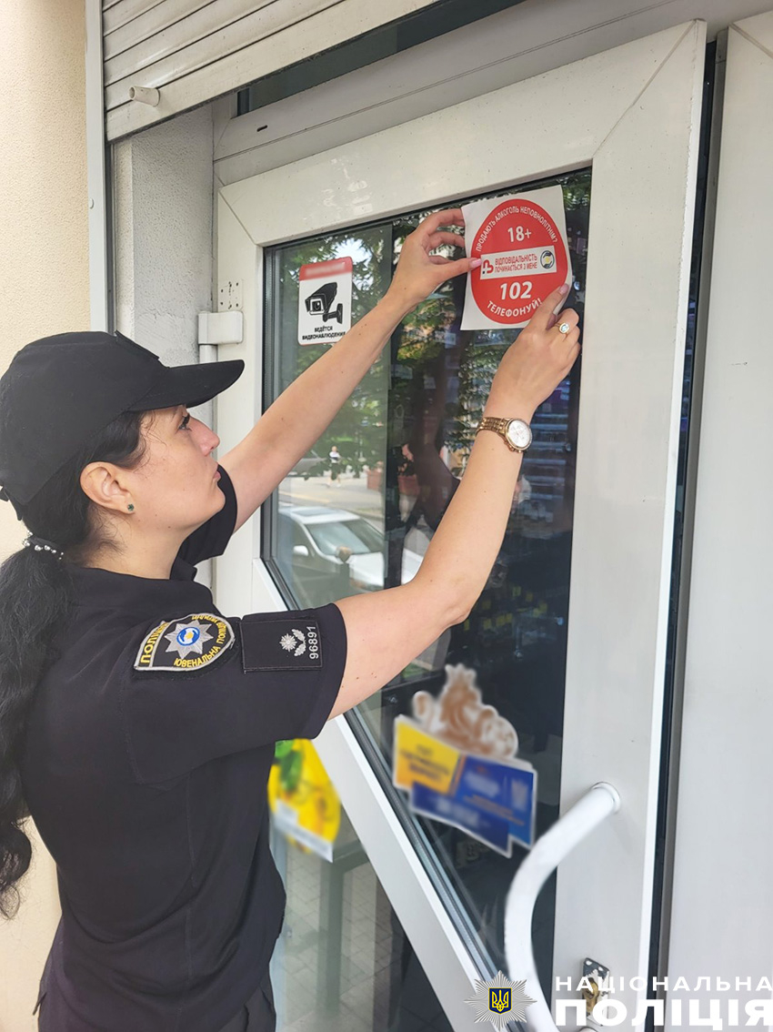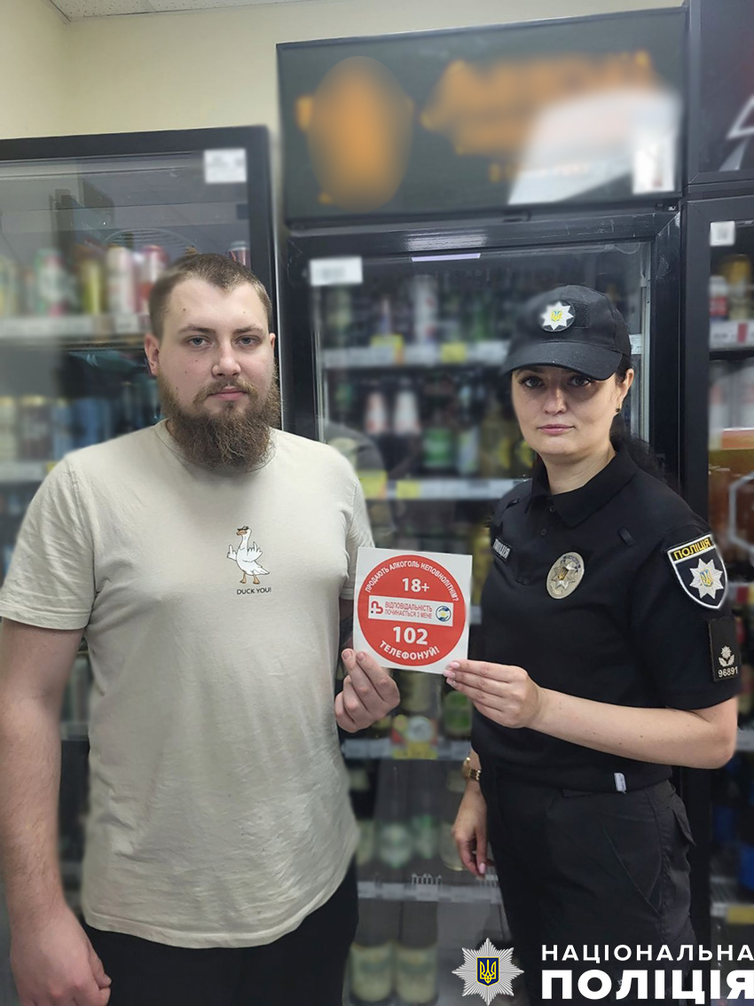 Крім цього, у кожному відвіданому закладі ювенальні поліцейські розмістили тематичні наліпки, зміст яких адресовано покупцям: ту і нагадування про незаконність продажу тютюну та алкоголю неповнолітнім, і заклик телефонувати «102» усім, хто став свідком такого неподобства.