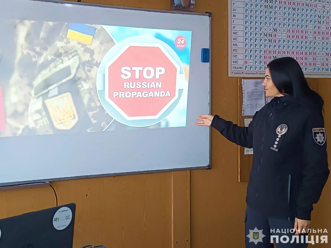 Ювенальні поліцейські спілкуються з дітьми про те, як уберегтися від небезпечного контенту, що може призвести до негативних наслідків. Також поліцейські попереджають про небезпеку вербування підлітків російськими спецслужбами для вчинення диверсій, розповідають про ризики, пов’язані з сумнівними розвагами в онлайн-просторі, можливе виникнення ігрової залежності.