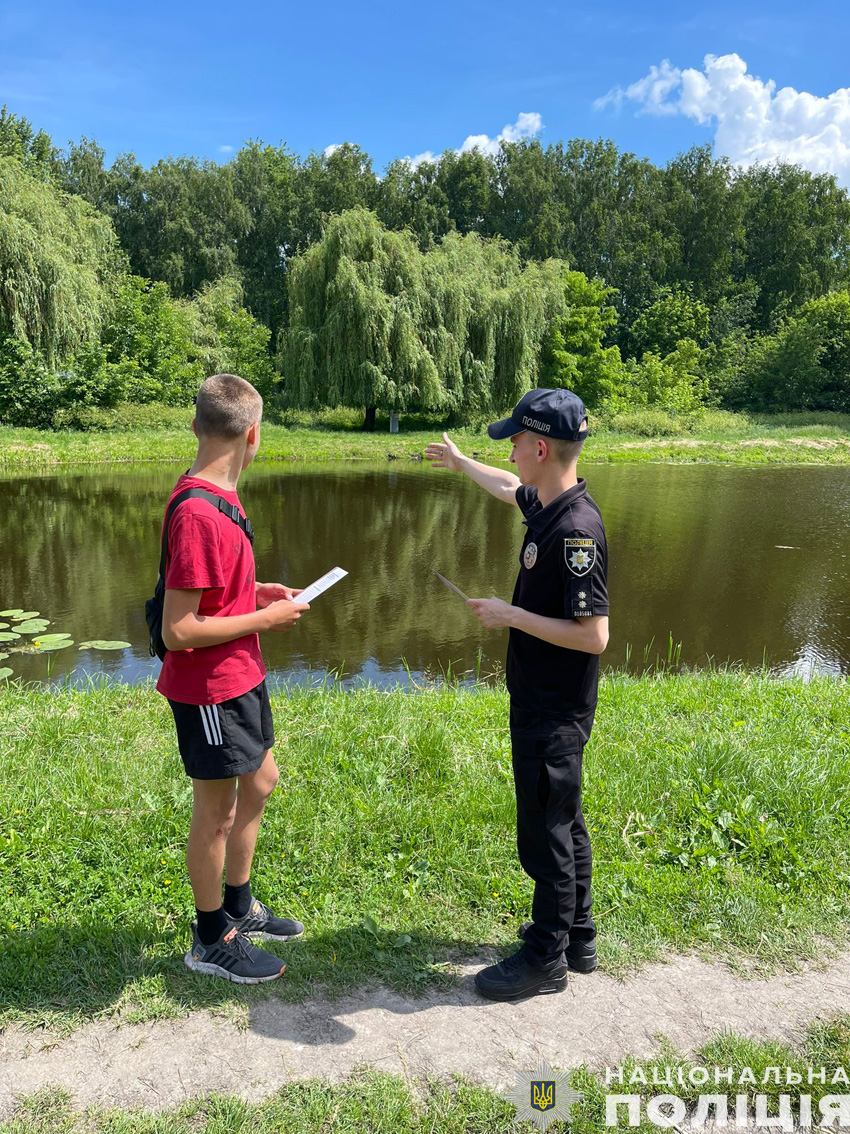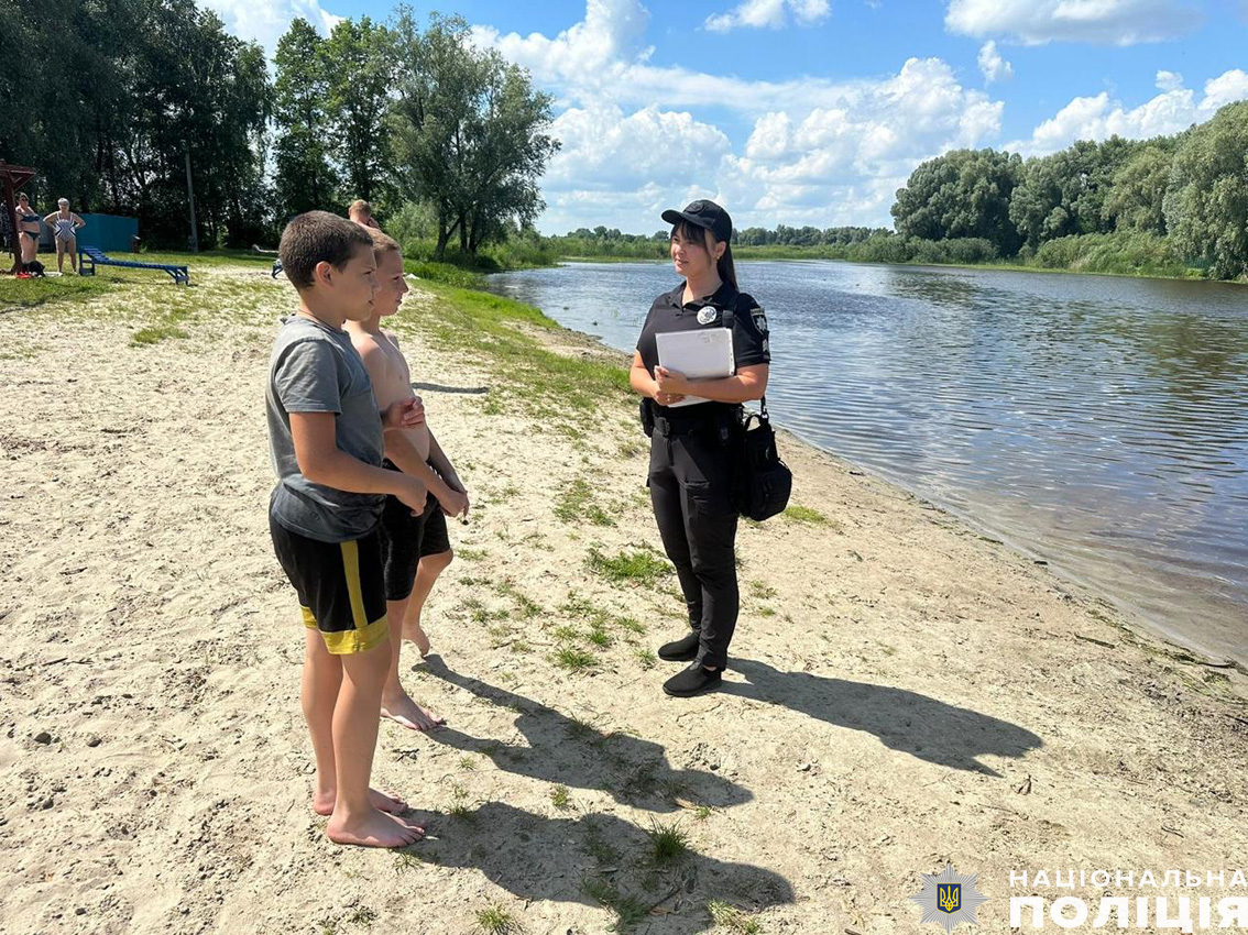 Щоб убезпечити малечу від різних загроз і нещасних випадків, які можуть виникнути під час літніх канікул, поліцейські посилили превентивну роботу та роз’яснюють дітям і їх батькам правила безпечного відпочинку біля водойм.