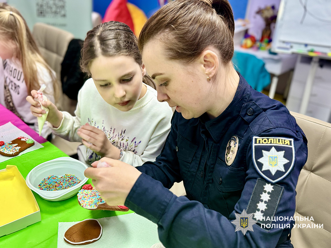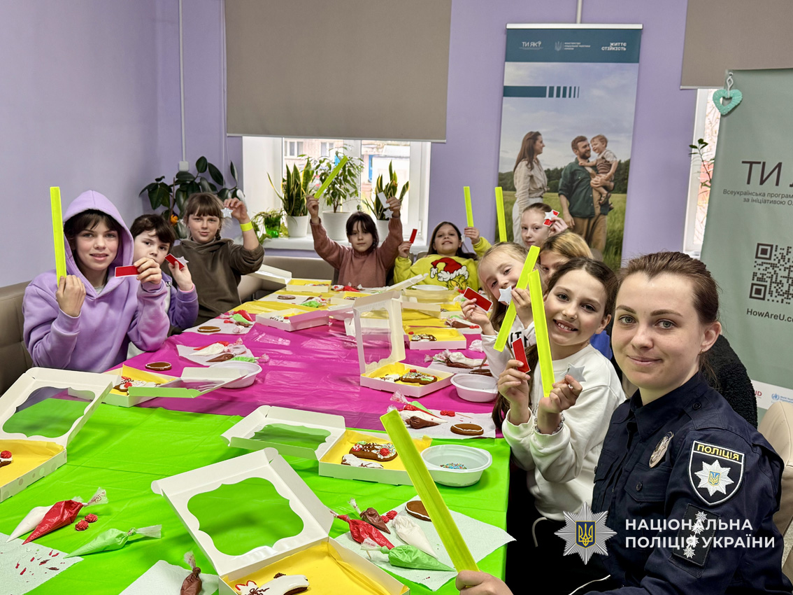 Інспектори ювенальної превенції Чернігівщини продовжують працювати з дітьми та долучатися до добрих справ, даруючи тепло, увагу та важливі знання. Так, ювенальні поліцейські Корюківського райвідділу поліції завітали до Центру життєстійкості, де разом із дітками створювали справжню великодню красу — розмальовували пряники.