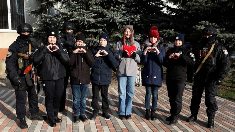 Під час символічного флешмобу поліцейські разом з дітьми з чернігівської гімназії №13 висловили слова подяки та підтримки всім захисникам і захисницям, які нині боронять нашу державу від ворога.