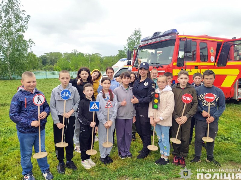 Поліцейські детально зупинились на безпеці на дорозі, розказали дітлахам як важливо дотримуватись правил дорожнього руху.