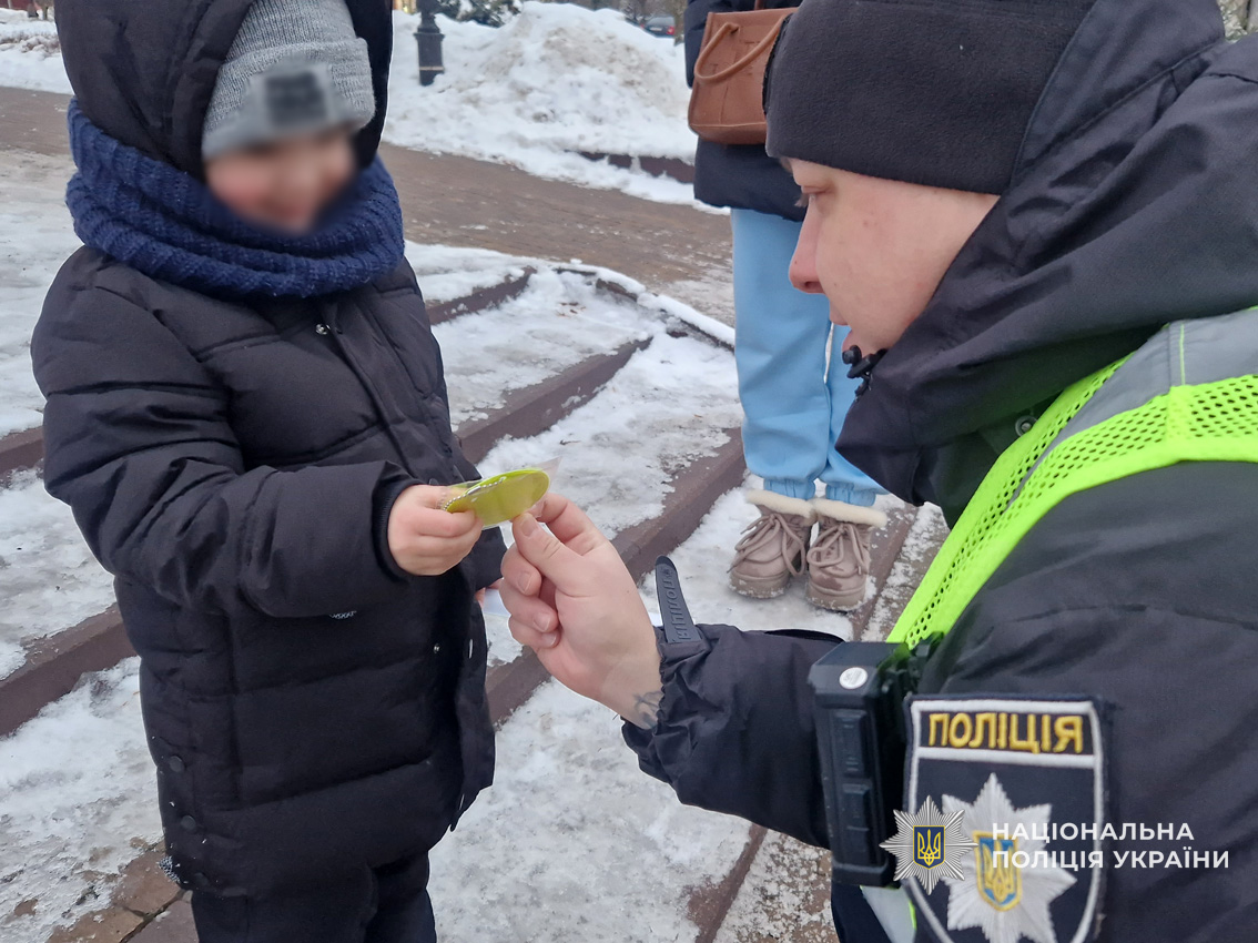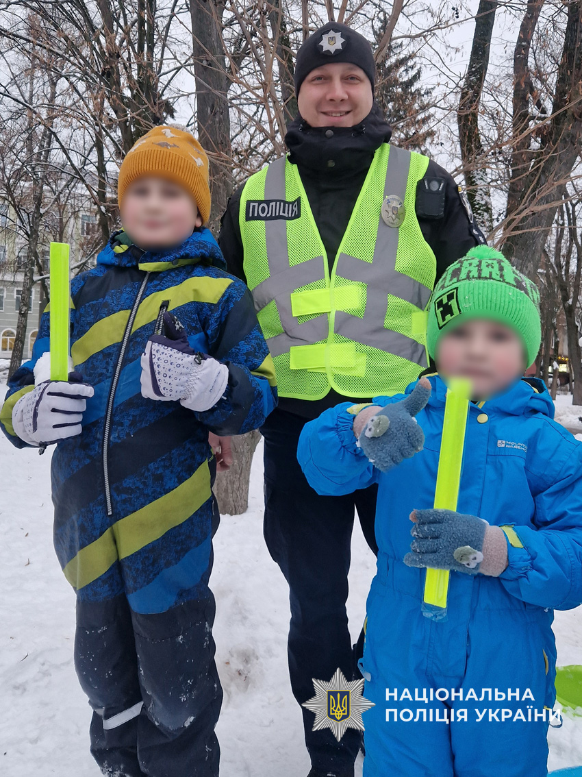 «Засвітись у темряві»: чернігівські поліцейські дарували дітям світловідбиваючі елементи та нагадали про безпеку