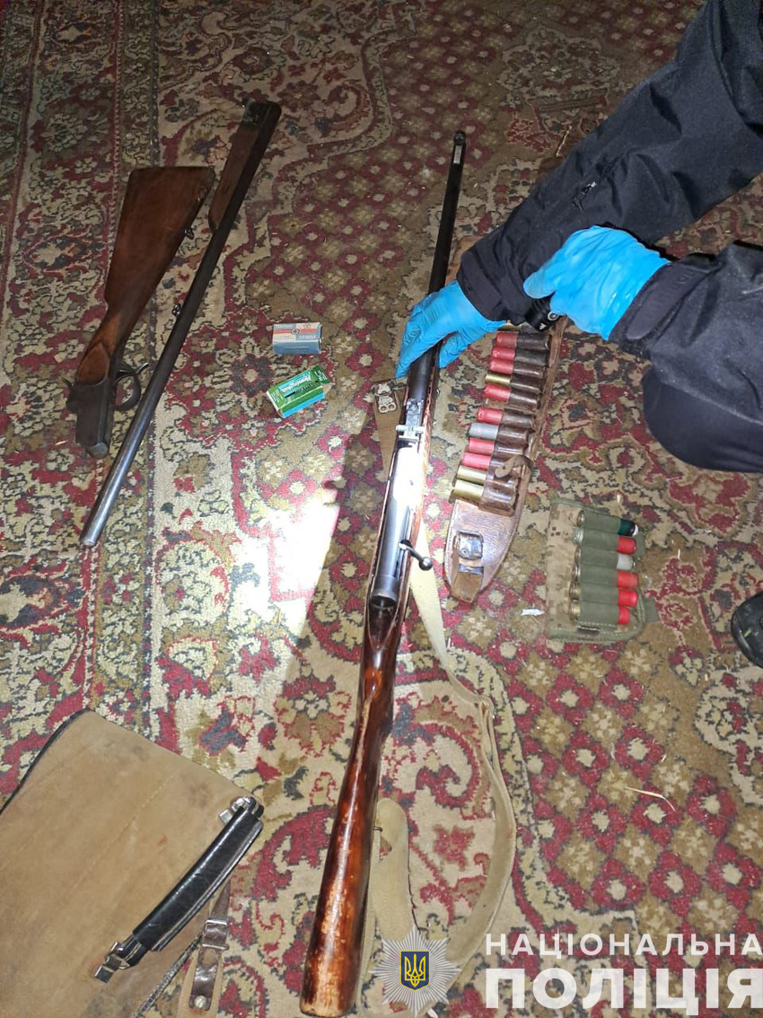 Правоохоронці вилучили у 54-річного чоловіка обріз мисливської рушниці, ще дві рушниці — нарізну та гладкоствольну, майже сотню набоїв до них та 6 магазинів до автомата Калашникова.