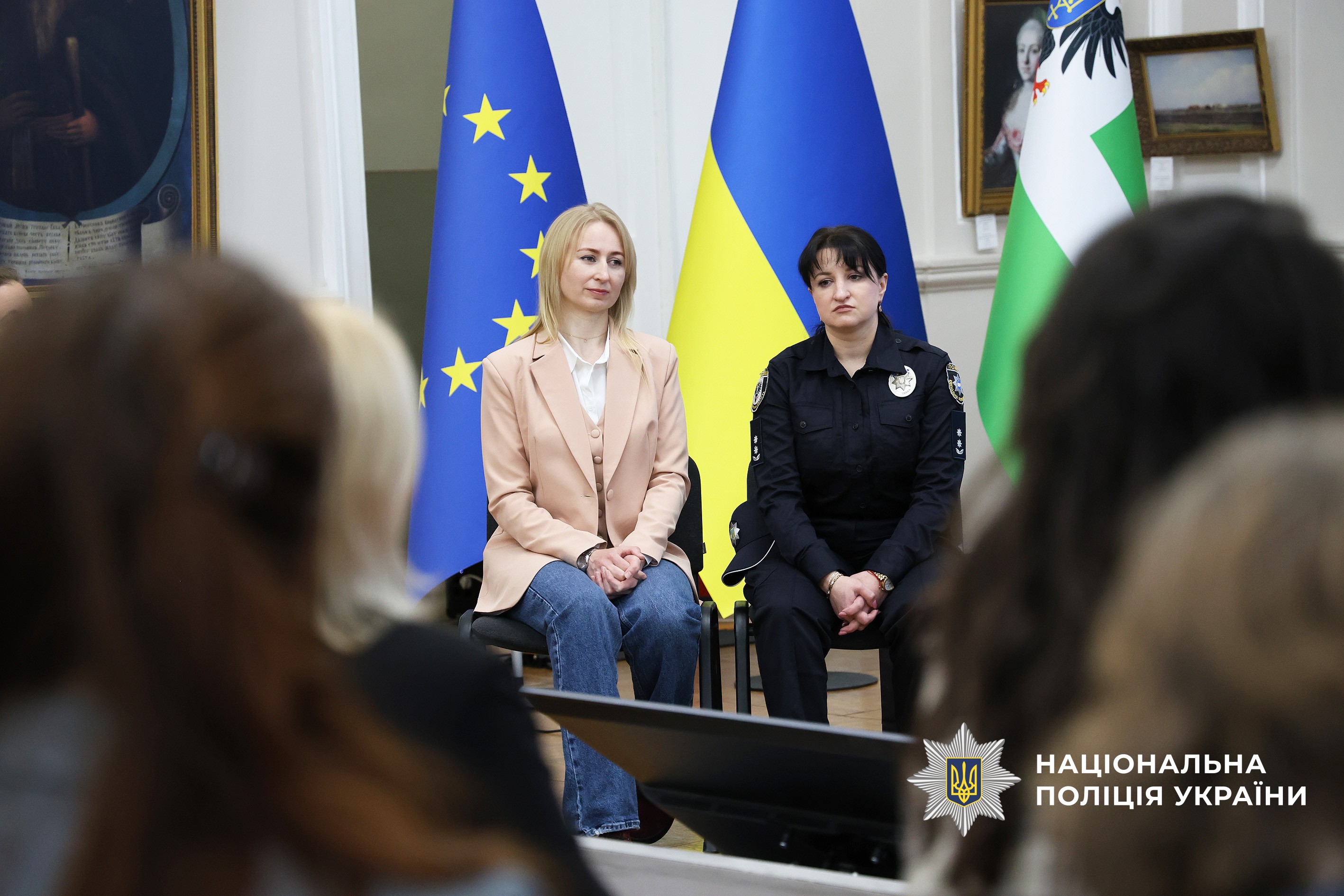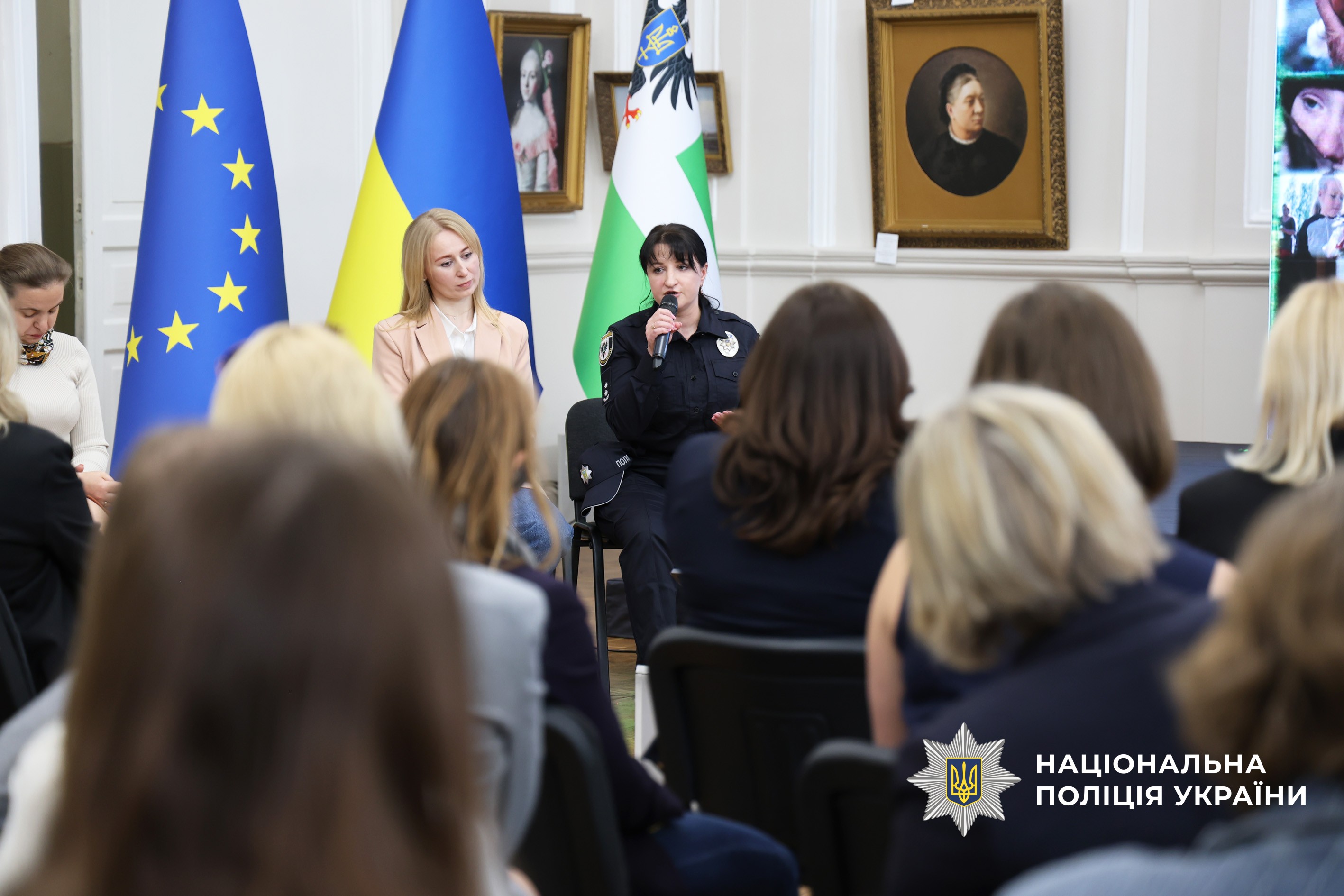 Жіноче лідерство в часи війни: поліцейська Оксана Огненко поділилася досвідом служби в умовах воєнного часу з міжнародною делегацією