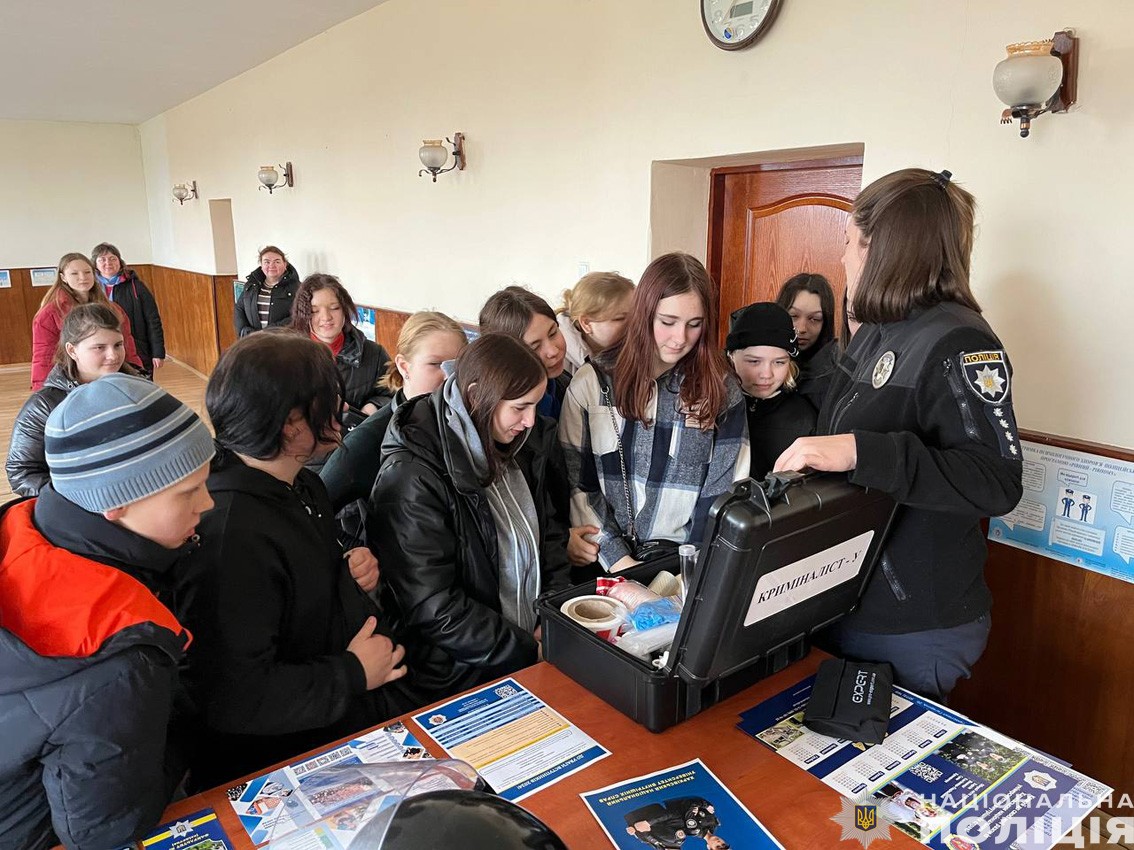 Неабияку зацікавленість у школярів викликало знайомство з спеціалістом-криміналістом. Поліцейська показала, що входить до криміналістичної валізи та розповіла, як вилучаються сліди з місця події.
